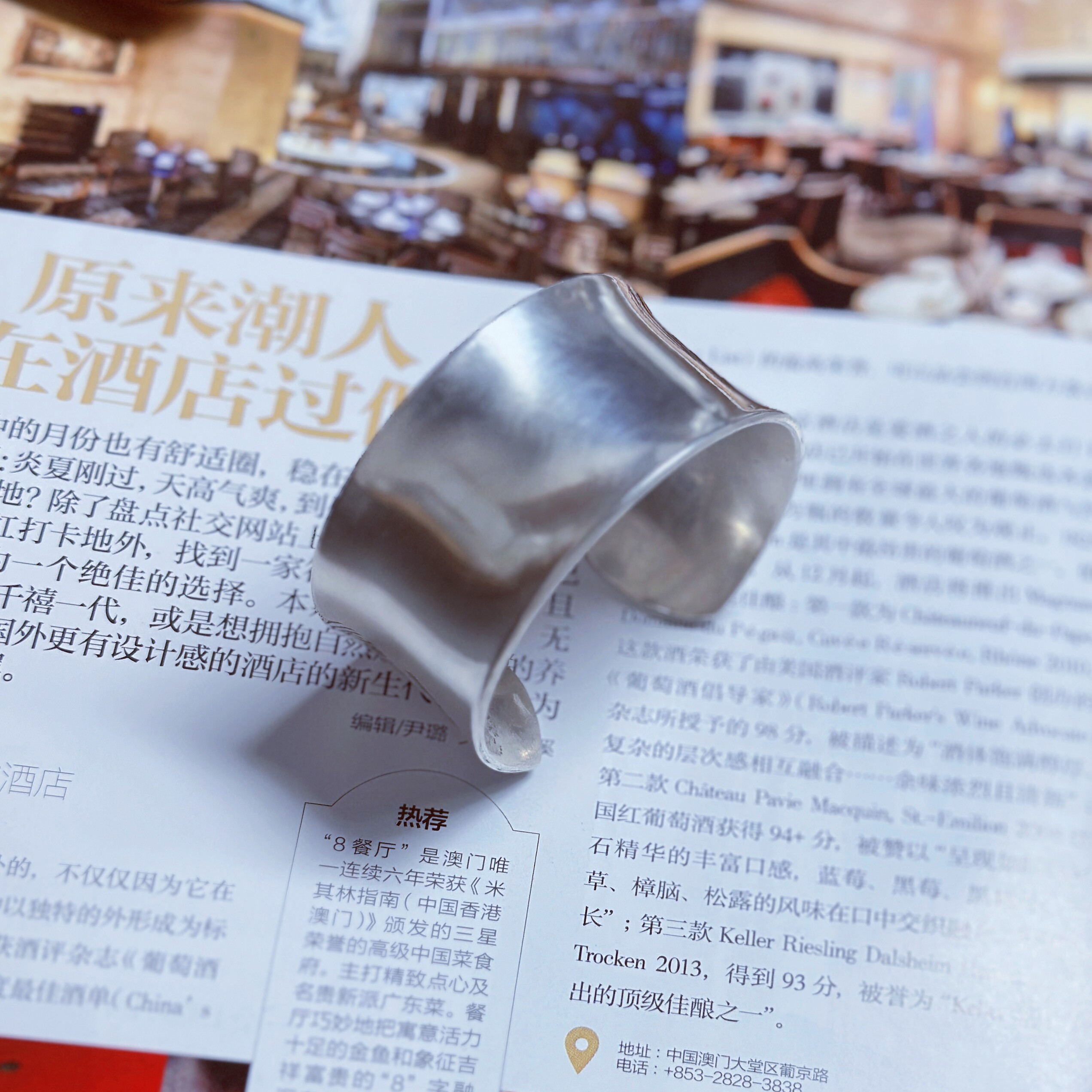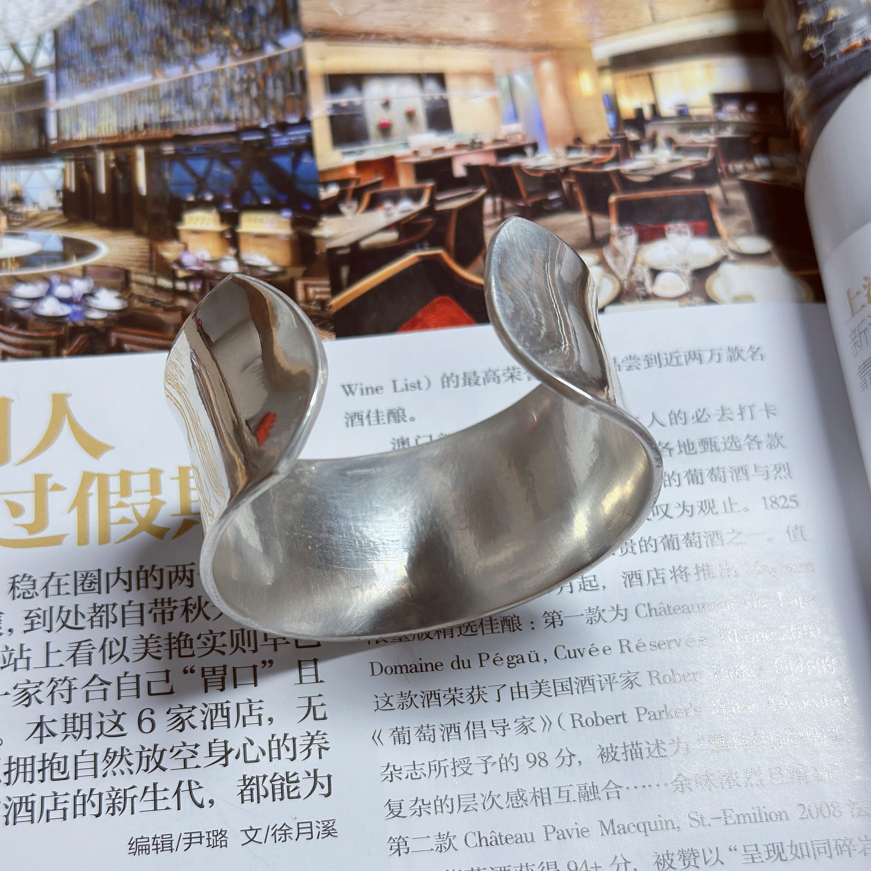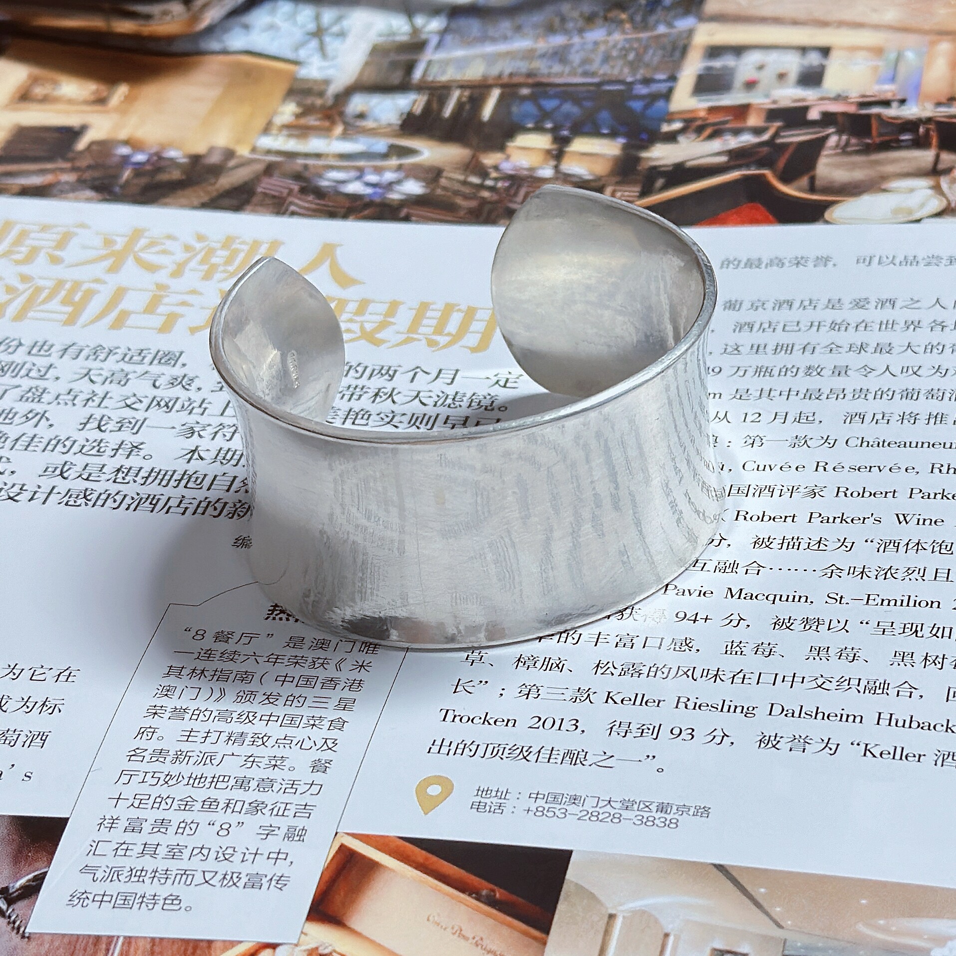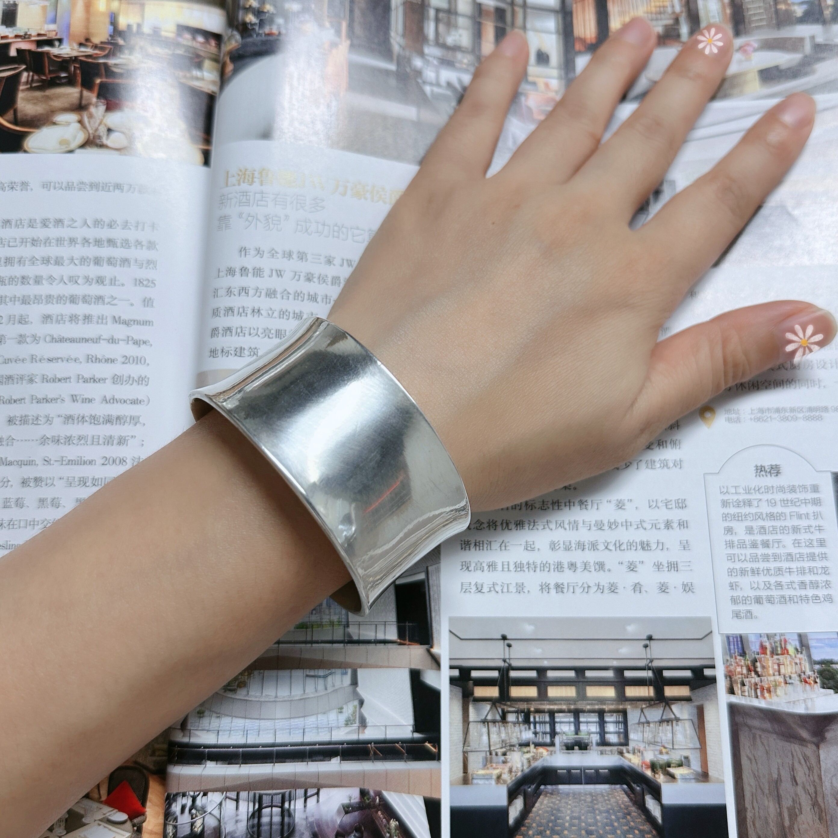 「弧」熙素足银宽版银手镯女ins小众设计弧面时尚简约亮面银手环