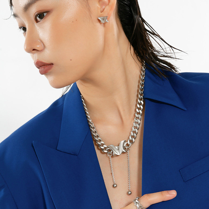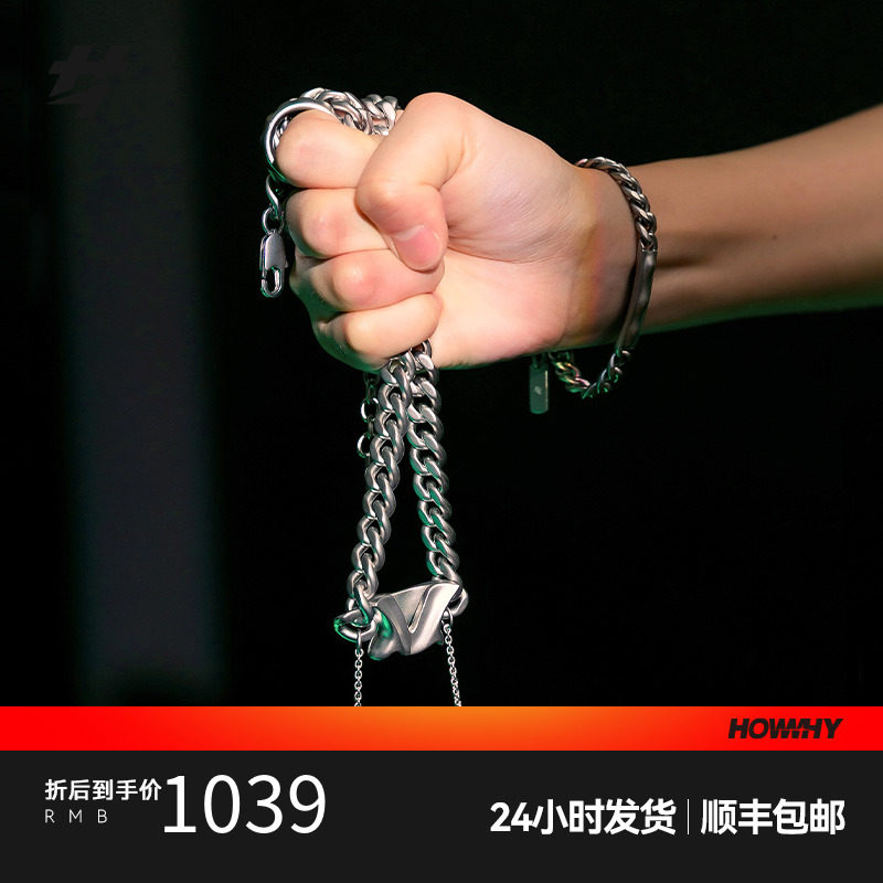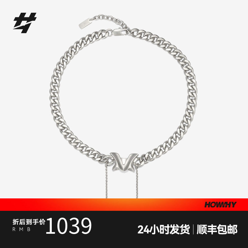 HOWWHY中性锁骨链2023新款高级感古巴链素链冷淡情侣潮酷时尚项链