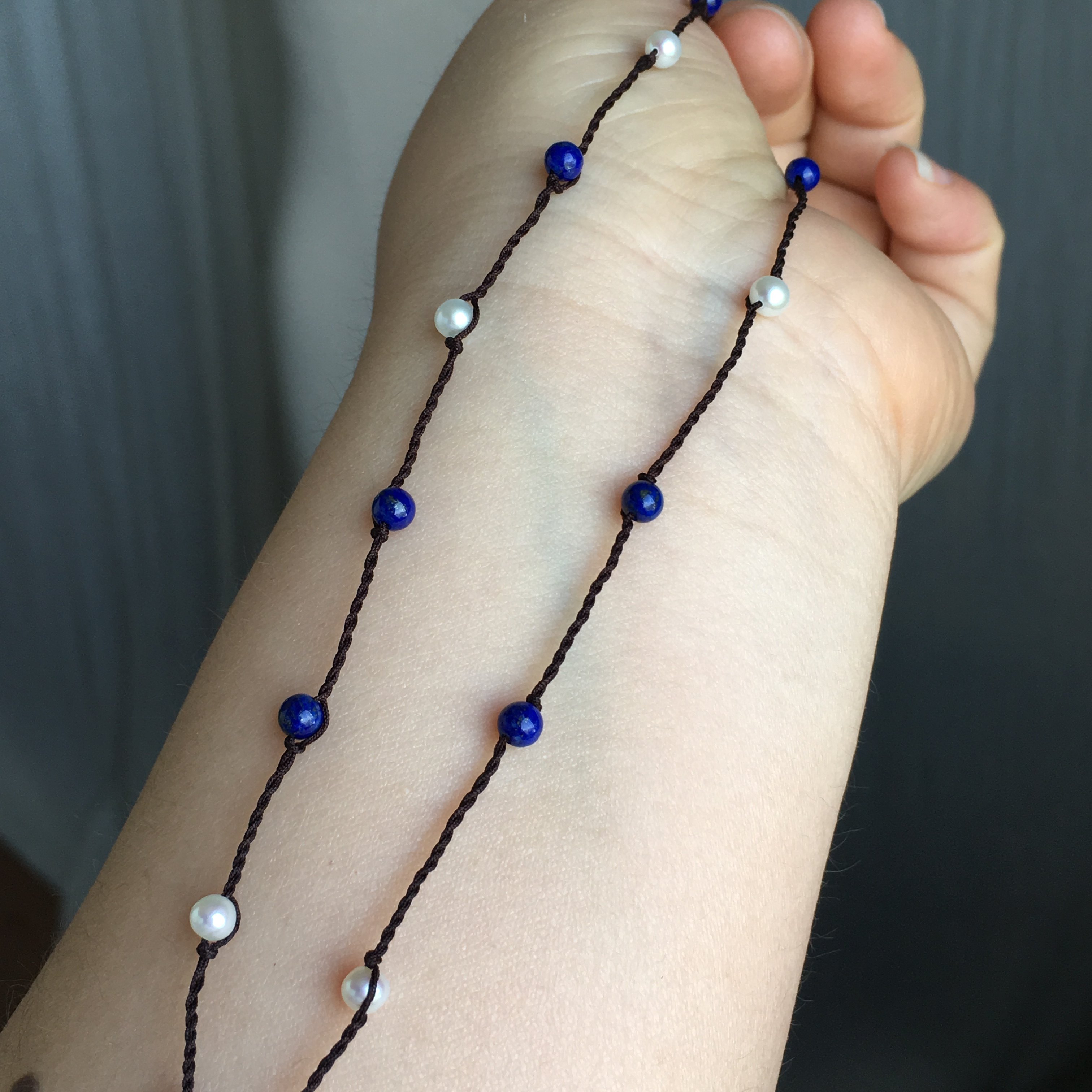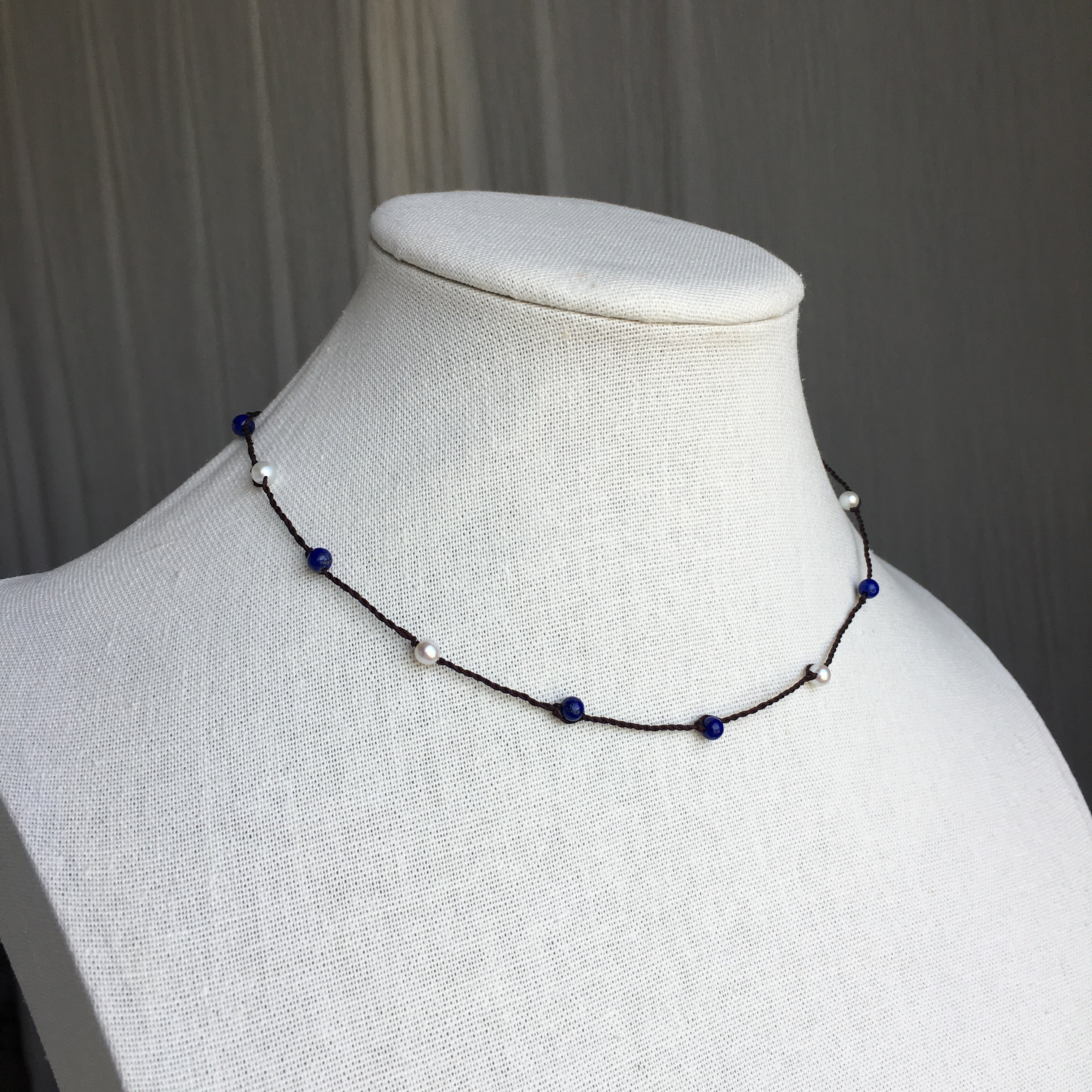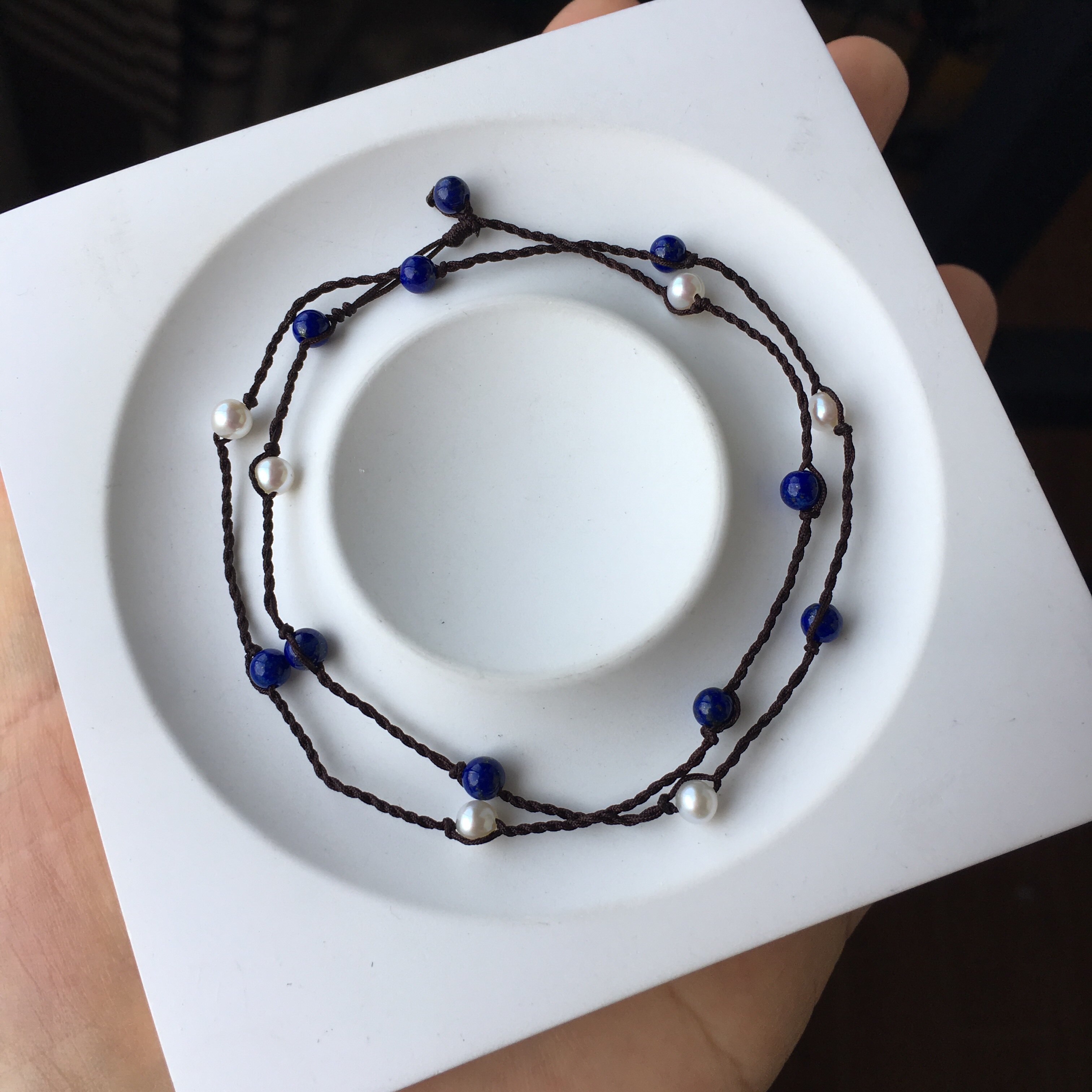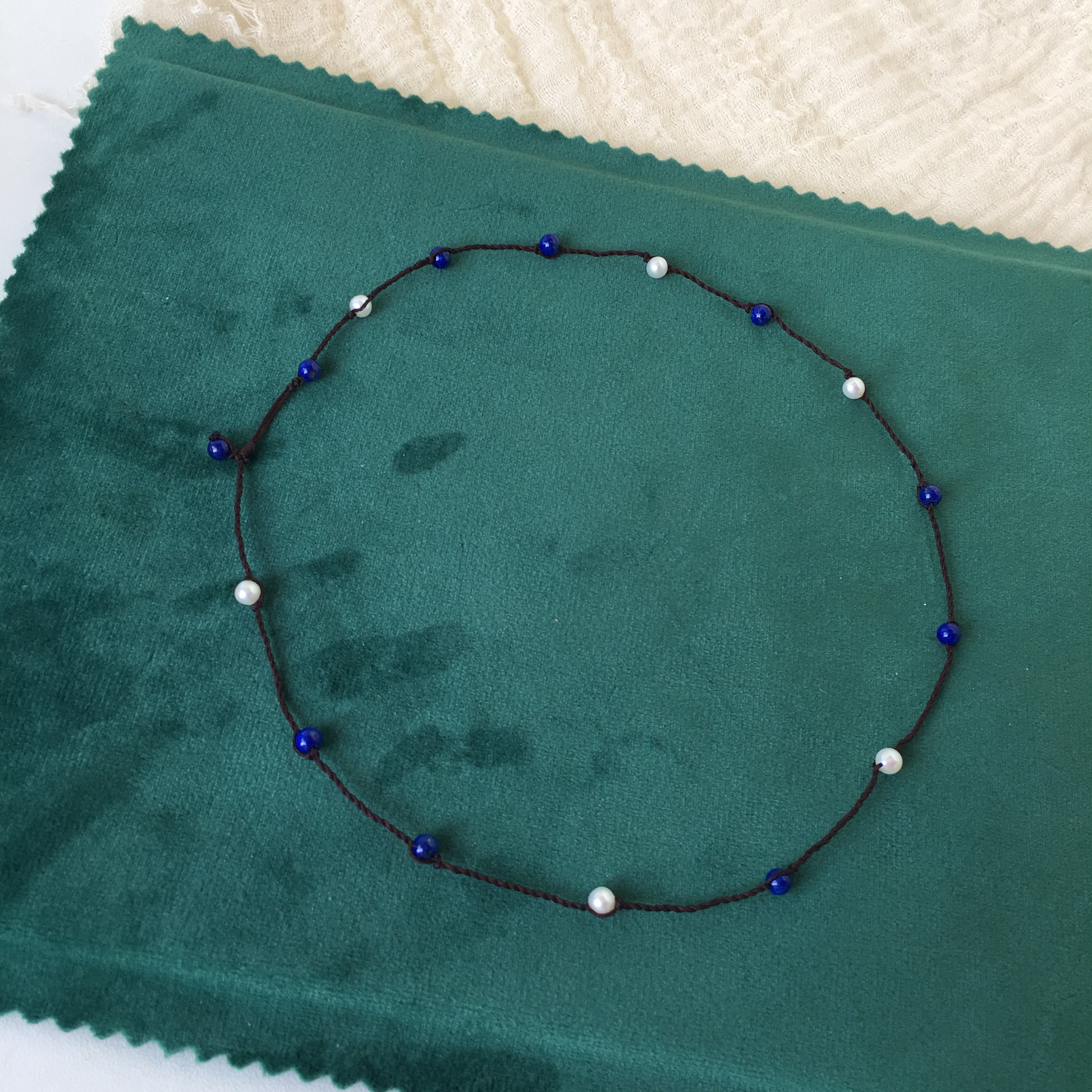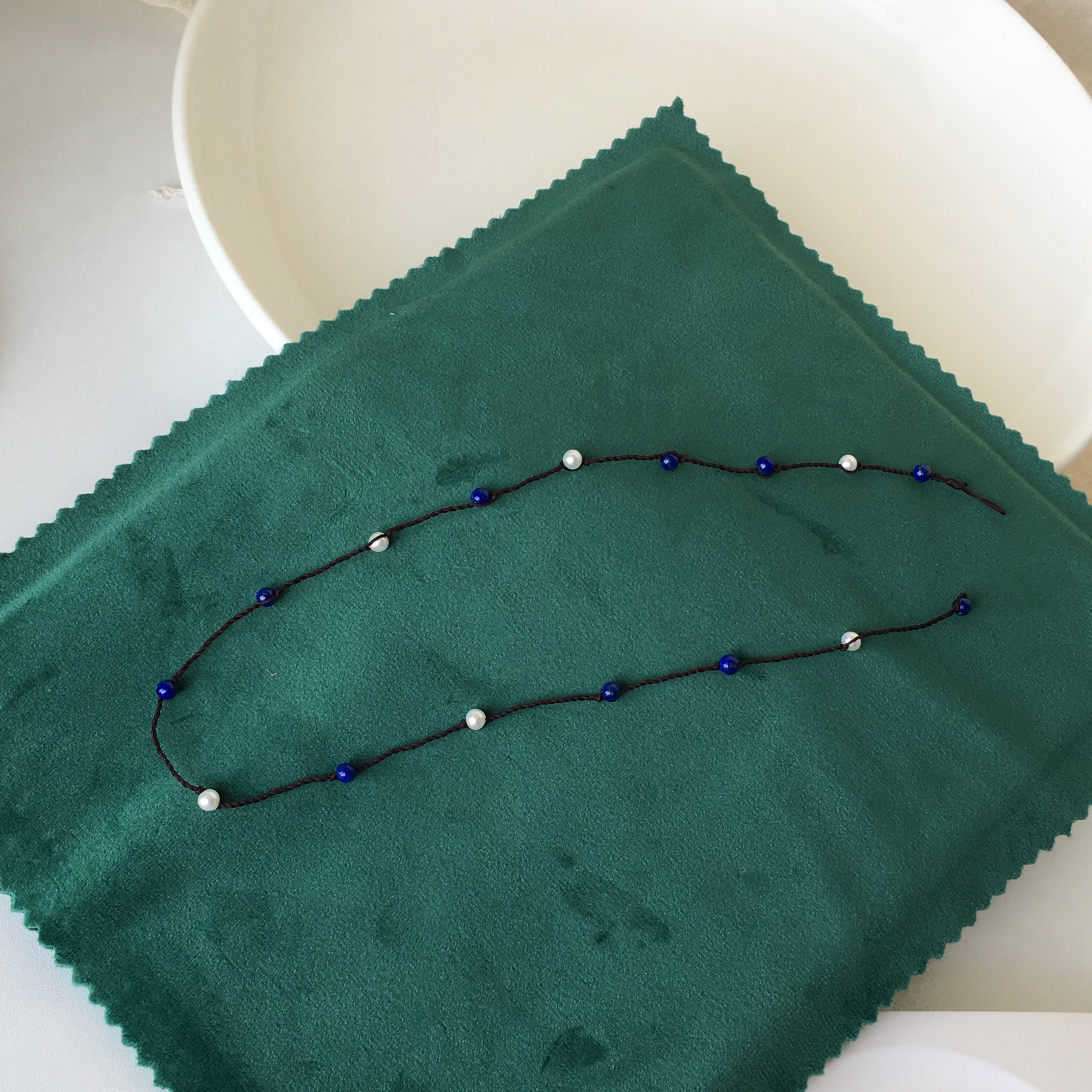 小众设计感圆珠颈链天然青金石珍珠项链手工编织锁骨链简约个性