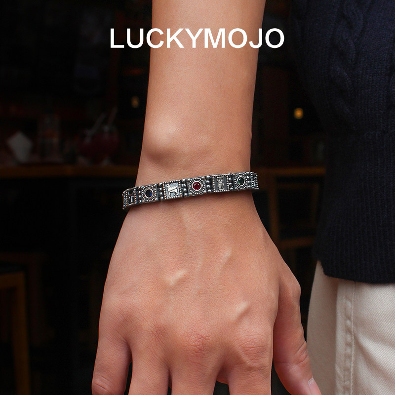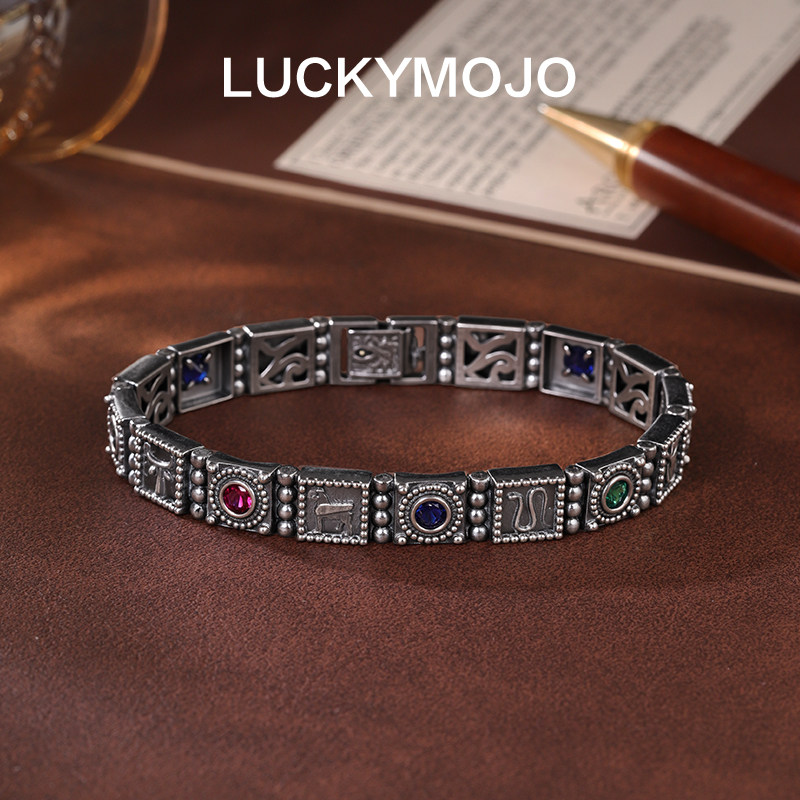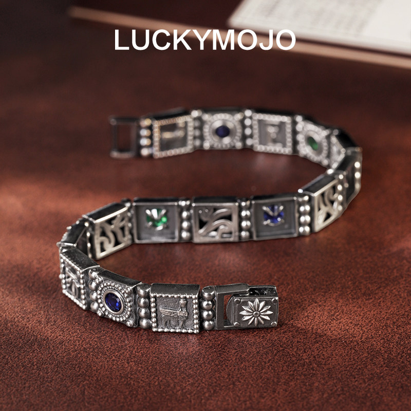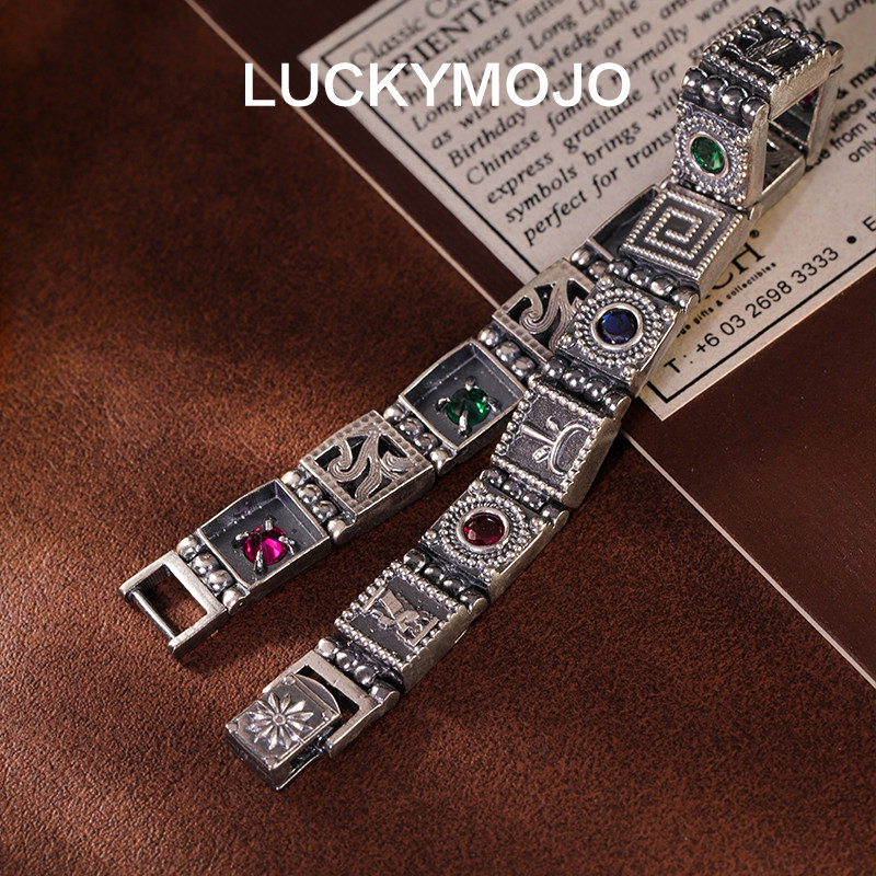 S925银复古银饰手链彩色方形时尚个性手链拼接小众独特男女款