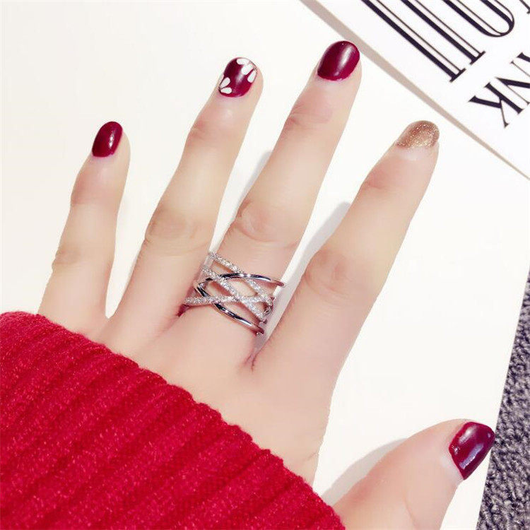 欧美夸张个性指环开口戒指女韩国潮人简约交叉多层关节戒尾戒食指