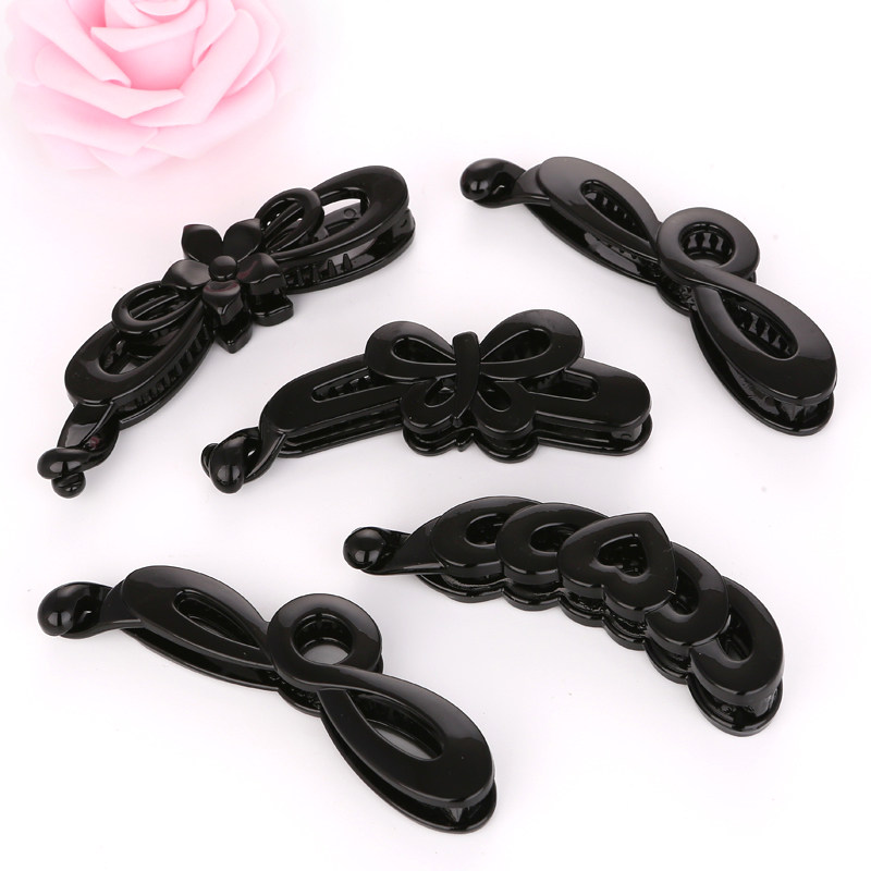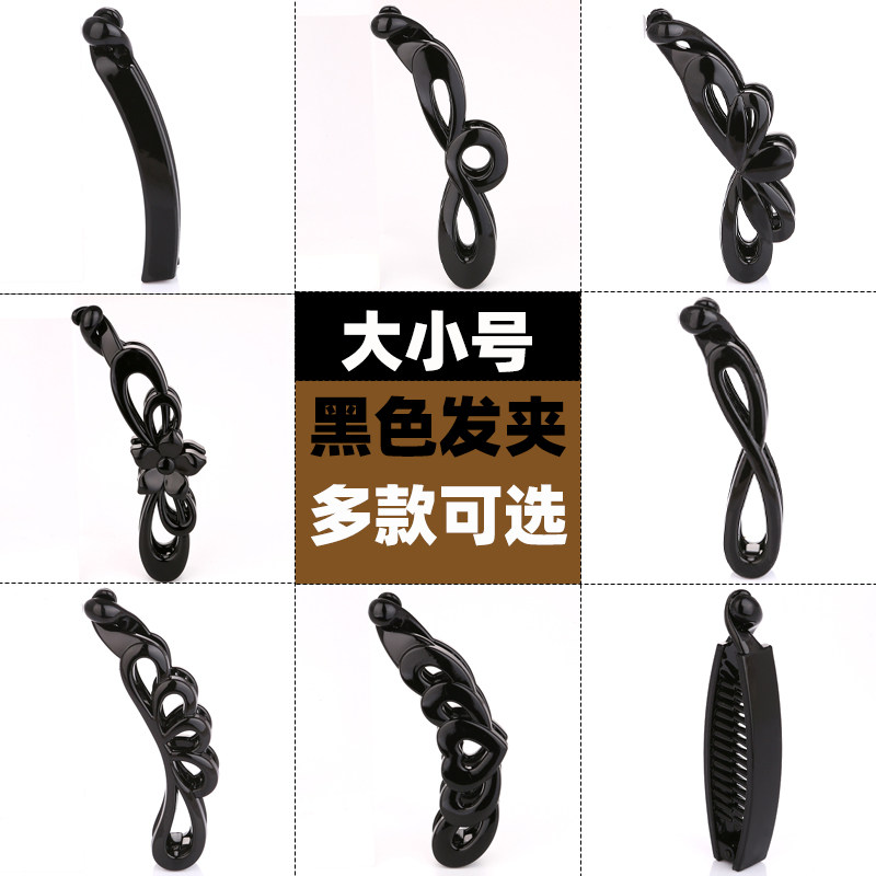 DIY大中小号黑色香蕉夹竖夹简约无钻带齿马尾发夹 韩国头饰品扭夹