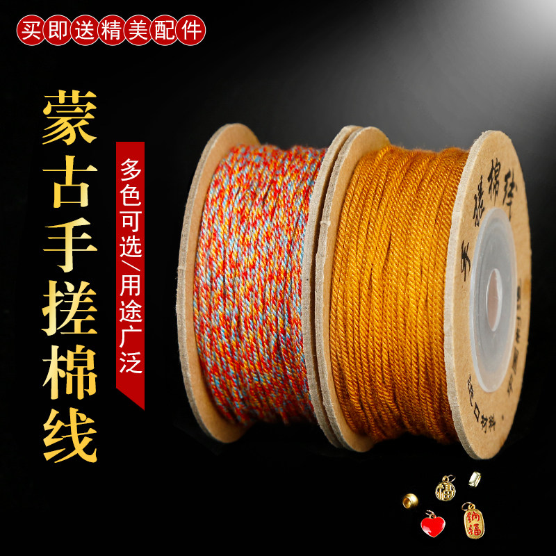文玩串珠藏式手搓棉线佛珠菩提无弹力串珠线绳编织流苏穗棉线绳