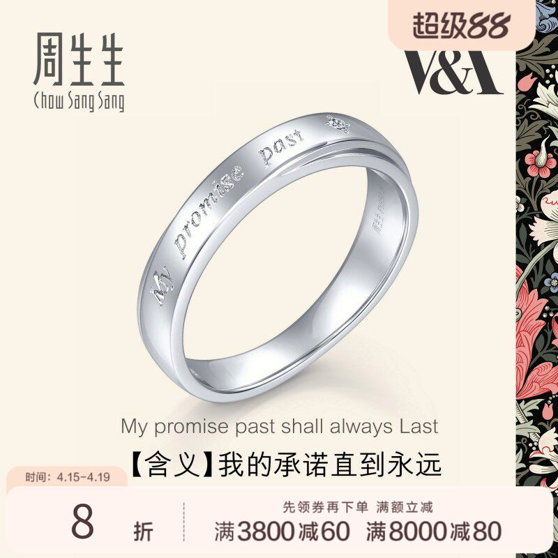 周生生V&A博物馆Pt950铂金钻石戒指白金戒指男款对戒40097R