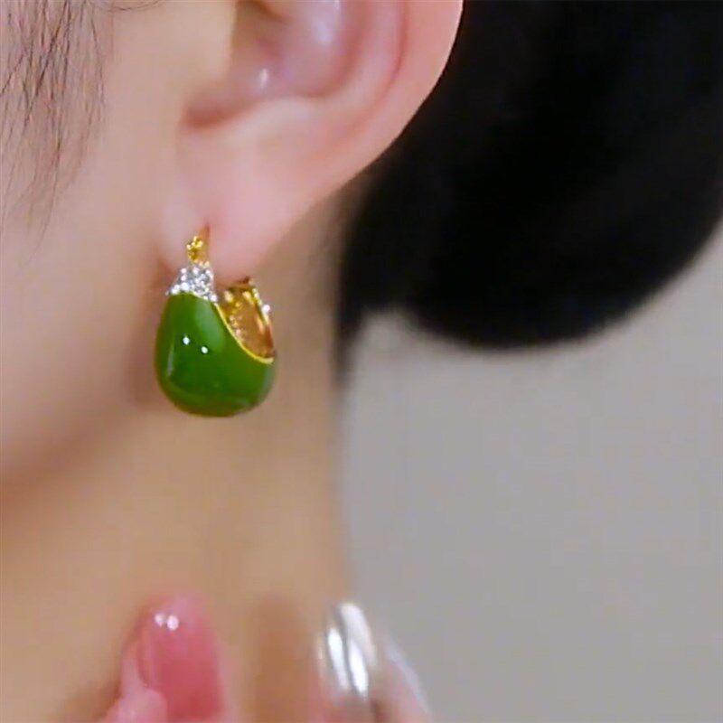 重工高档牛油果绿显白提篮耳环时尚百搭小提包耳扣气质女精致耳坠