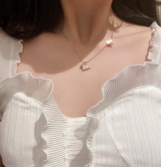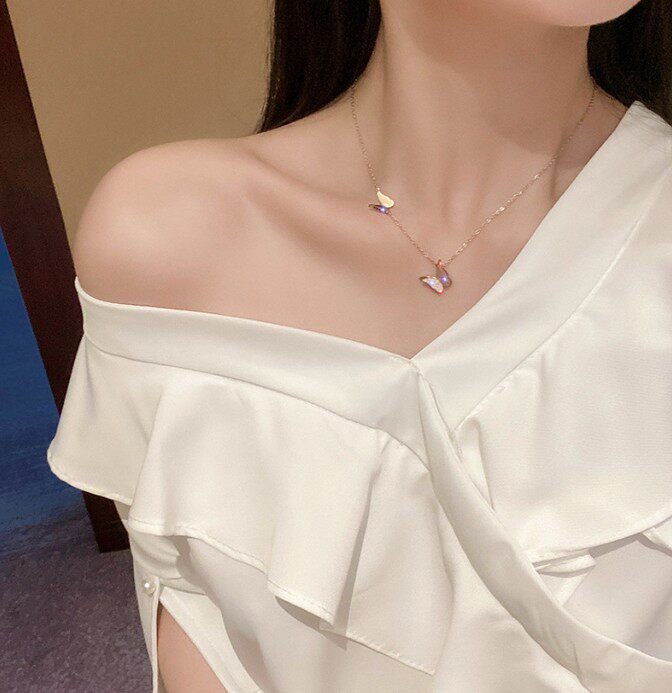 双层蝴蝶项链女简约锁骨链2020年新款小众设计网红ins冷淡风气质