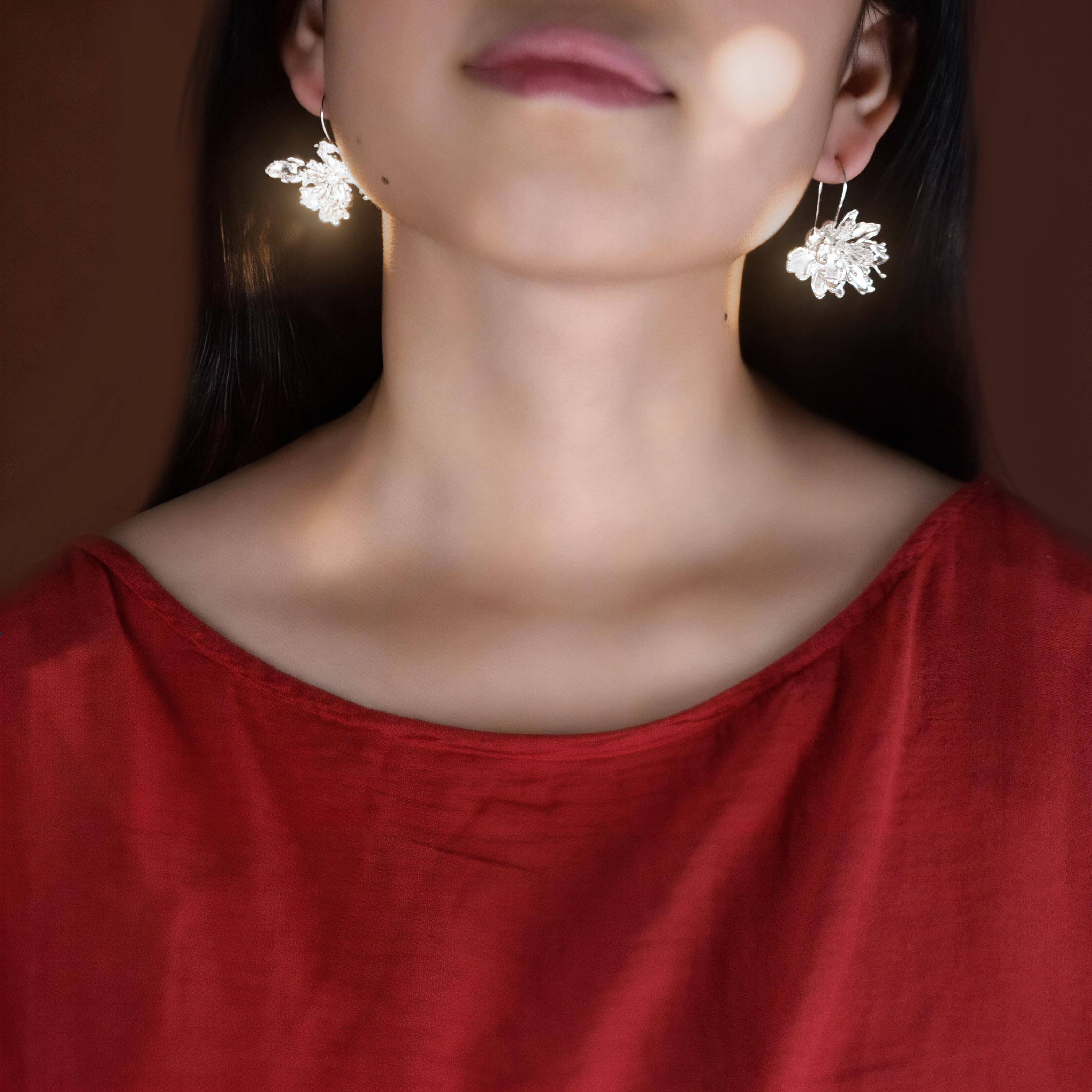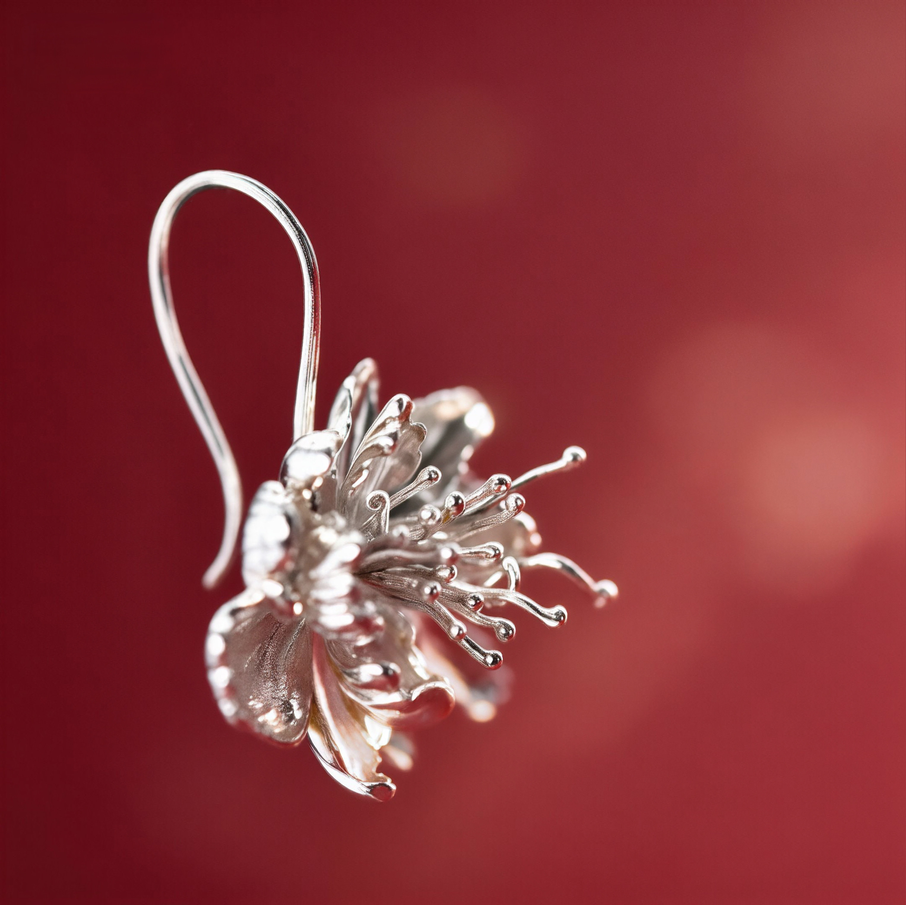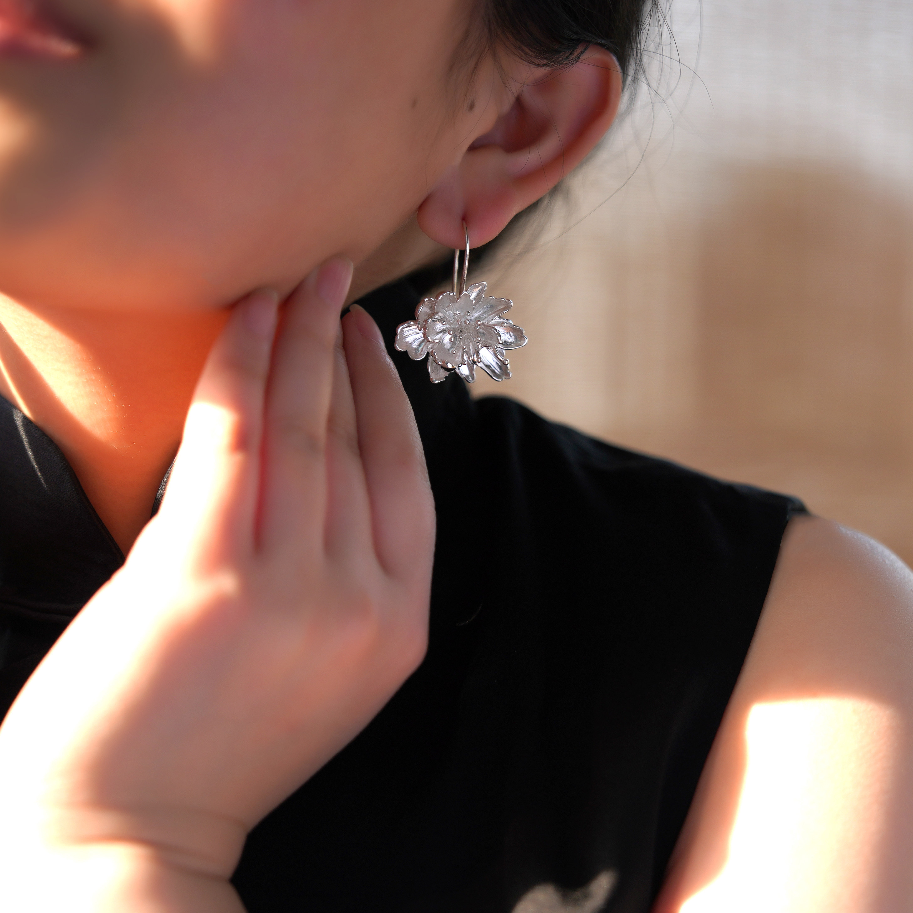 《素牡丹》九九倾城原创/国风925银耳环手工复古牡丹耳环耳钩耳饰