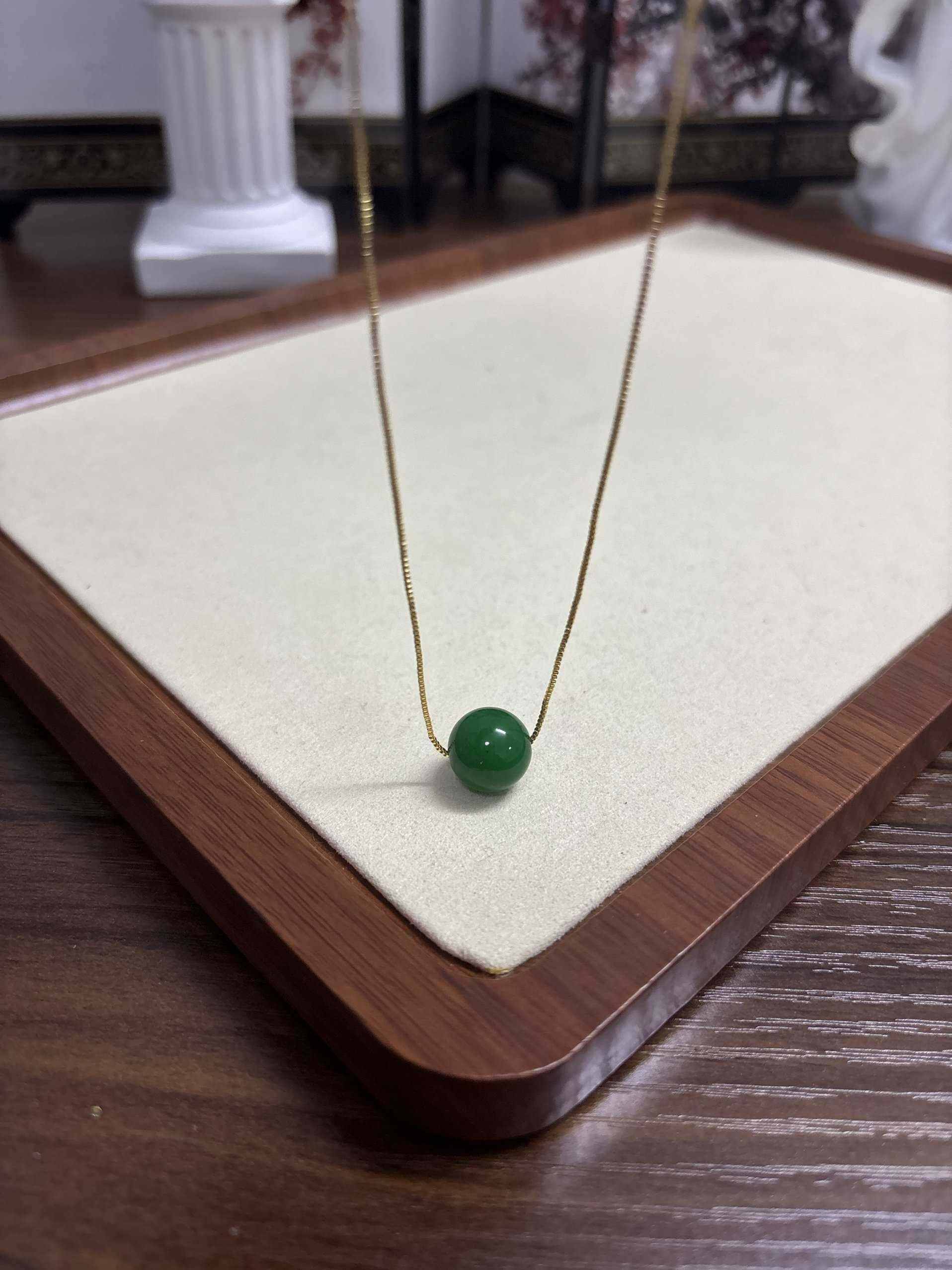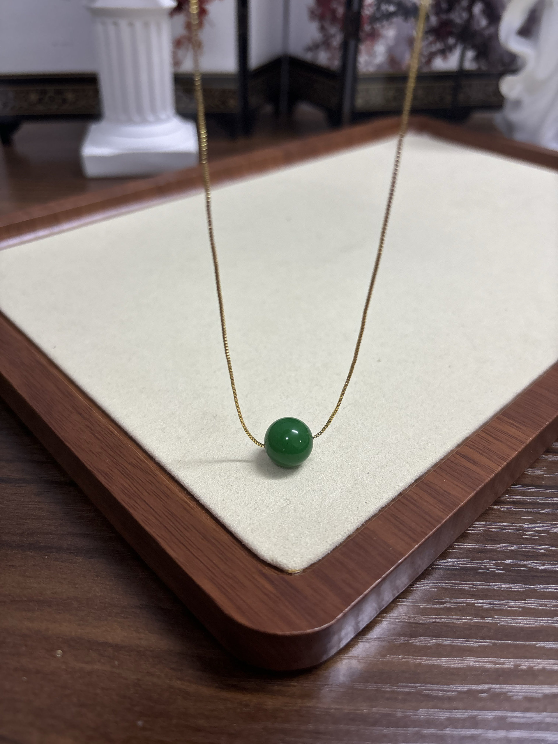 天然缅甸翡翠A货圆珠12mm单珠吊坠14k金项链转运珠玉石挂件女