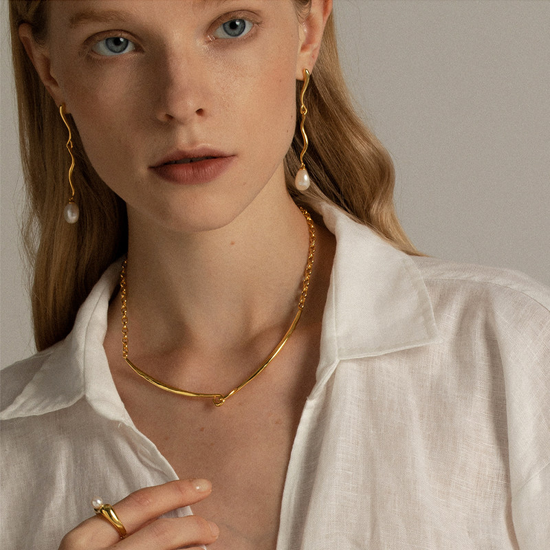 Unfolds水滴项链女珍珠吊坠2022年新款欧美小众拼接锁骨链可调节