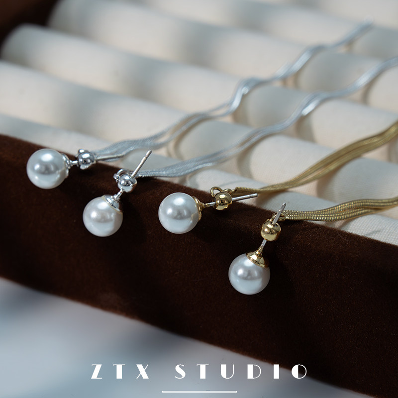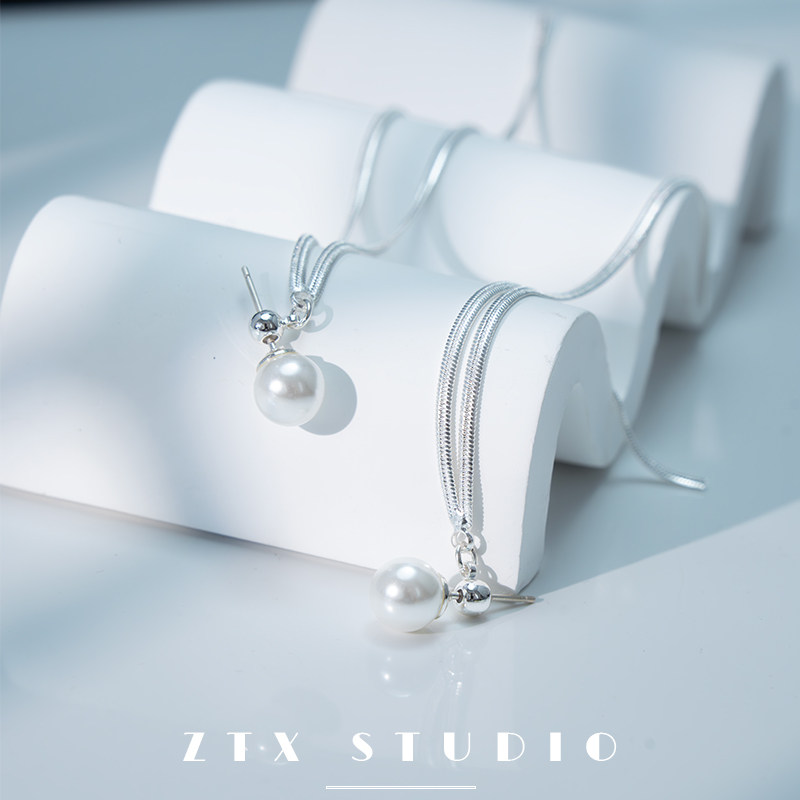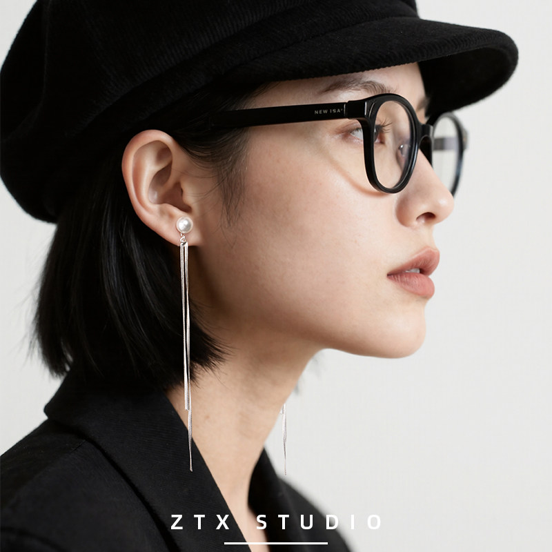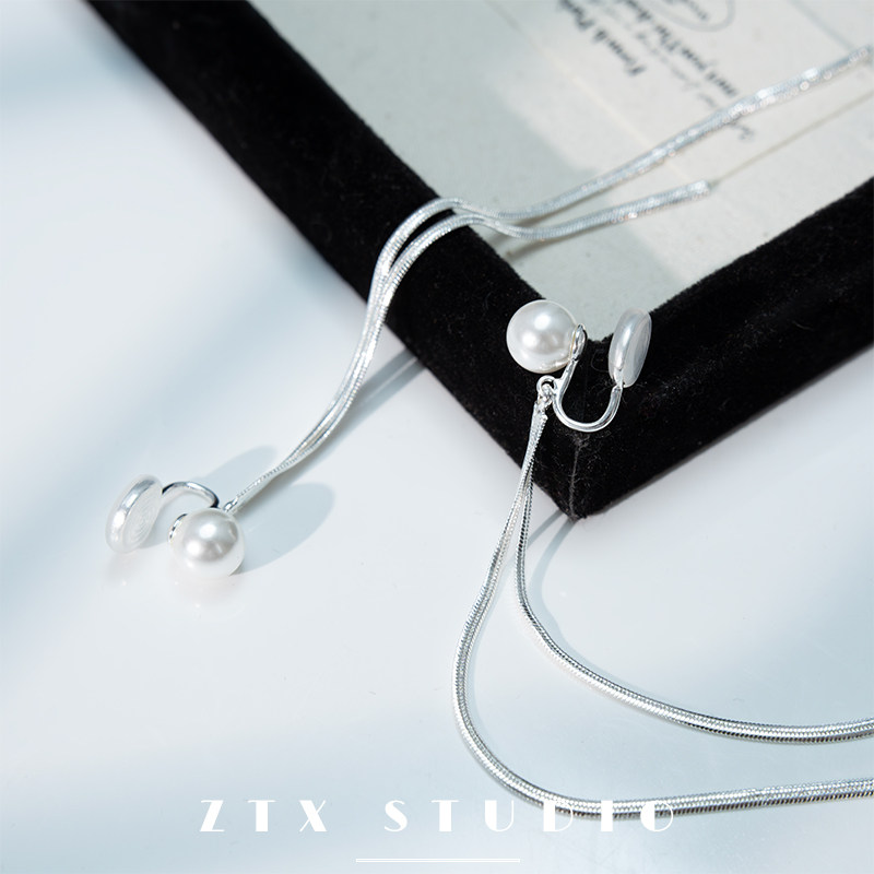 ZTX 流苏珍珠耳夹女无耳洞绝美超长银色方圆脸耳饰无痛蚊香盘耳环