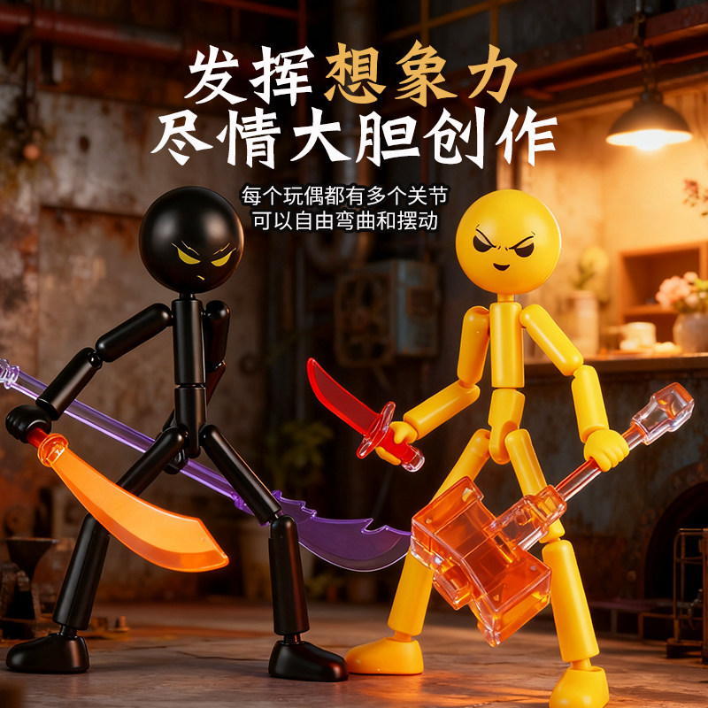 新款暴走火柴人玩具升级多关节可动人偶小人潮流手办DIY拼装模型