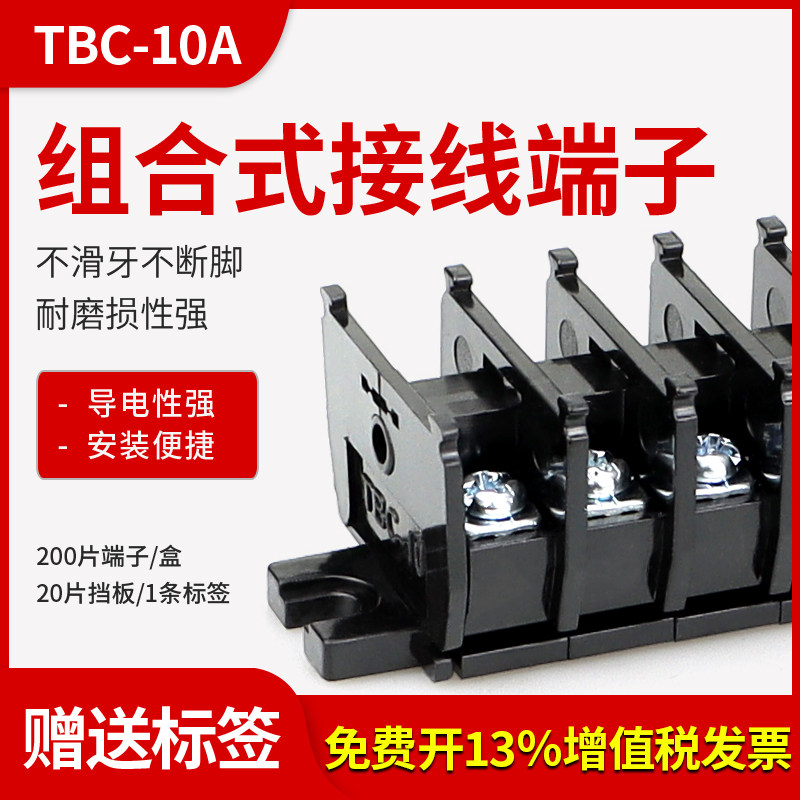 TBC-10A 导轨组合式接线端子 送标签拼接组装型 接线端子盘配挡板