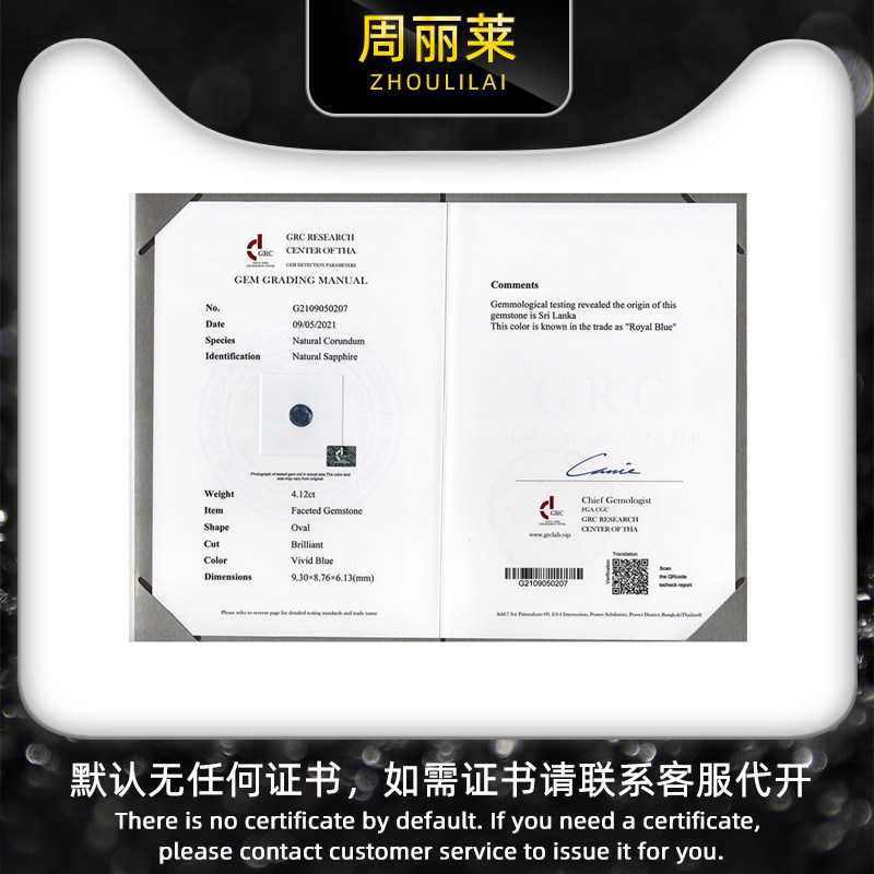 培育彩宝皇家蓝马眼实验室提拉法人工合成彩宝戒面