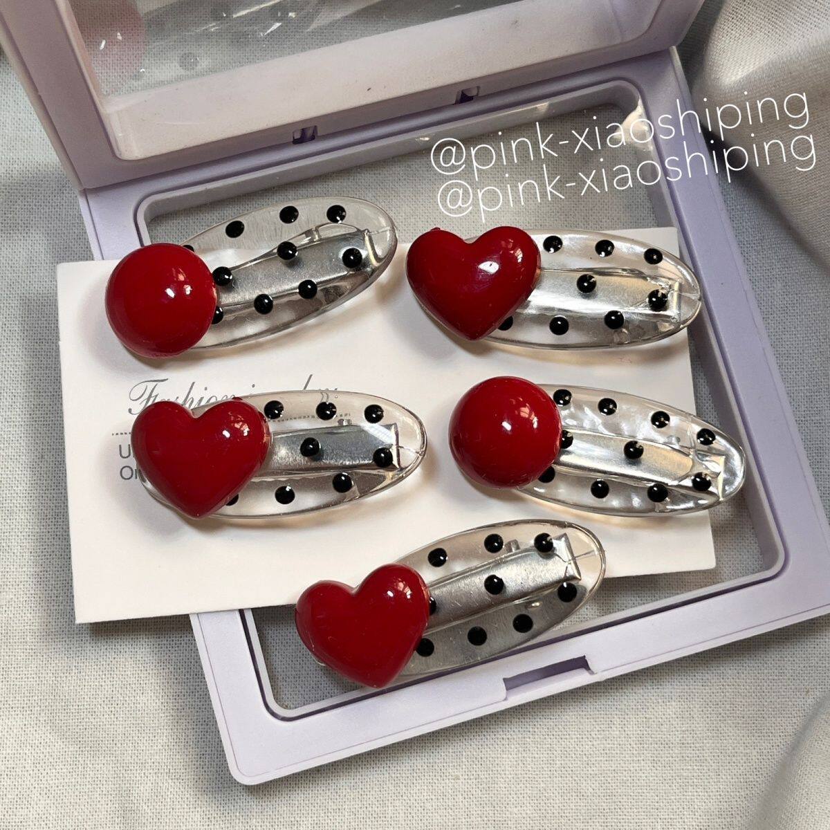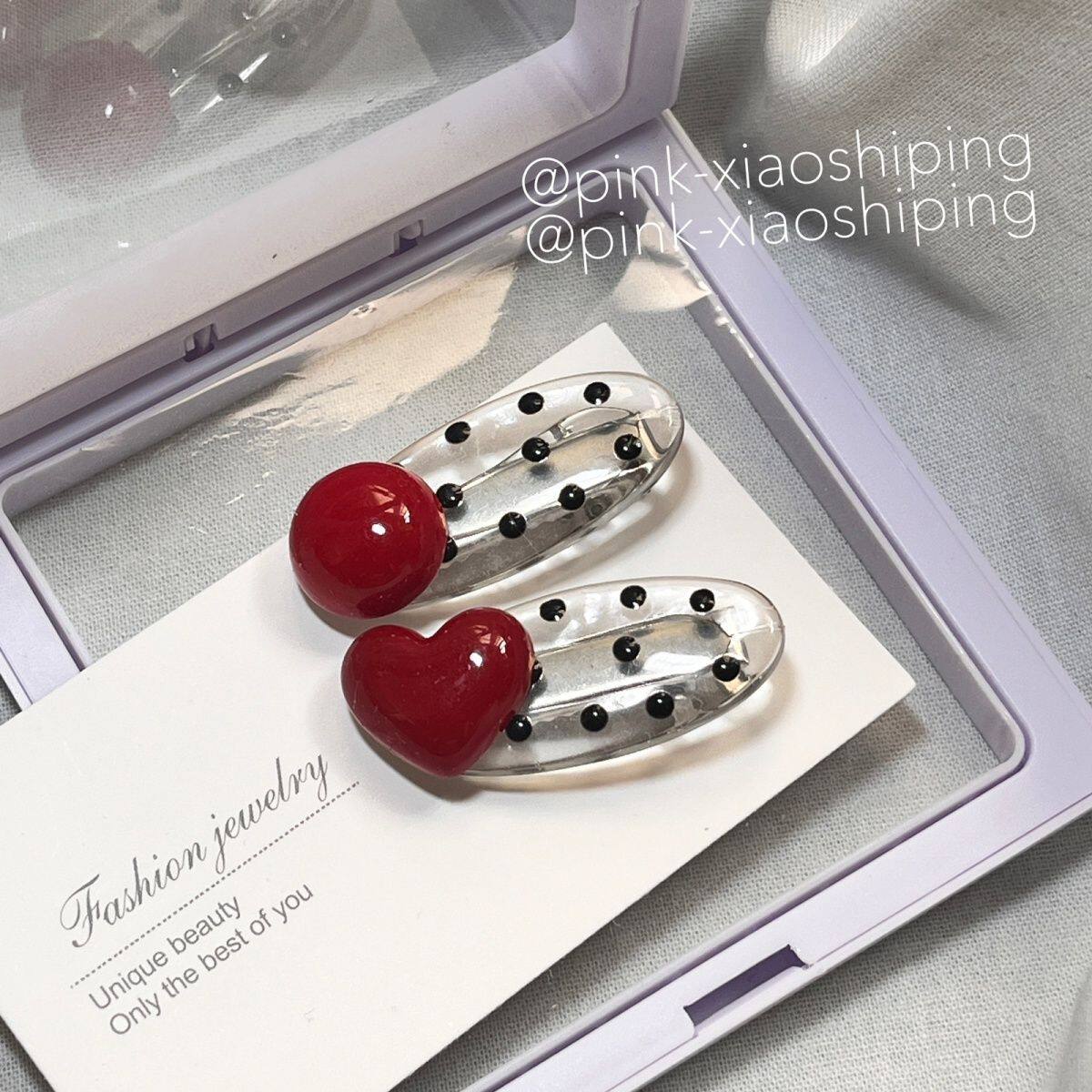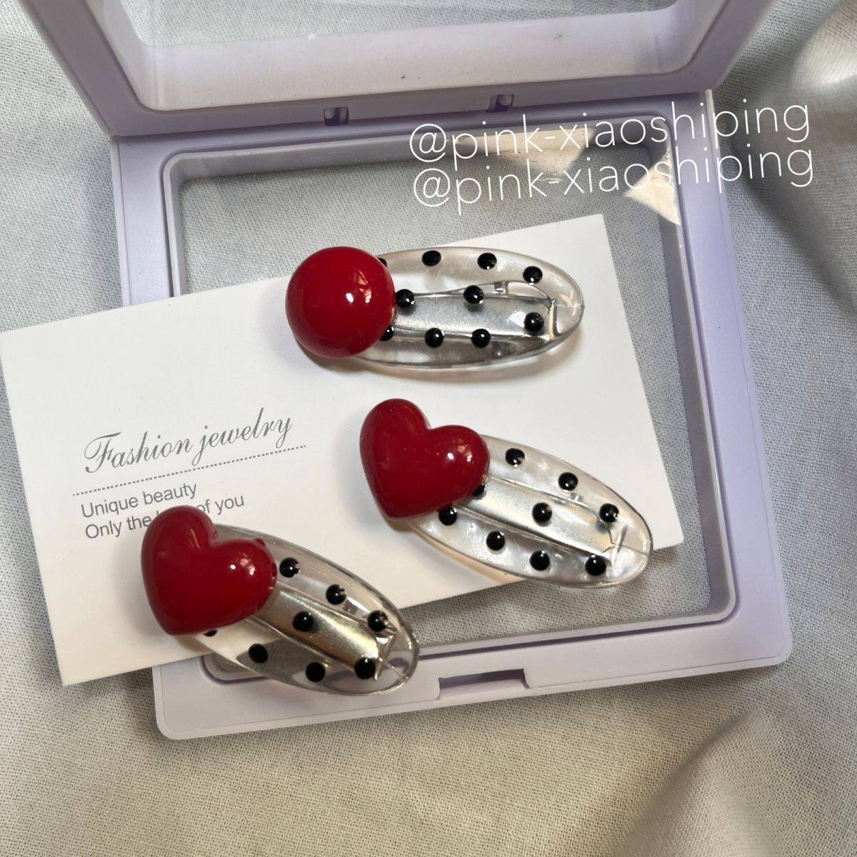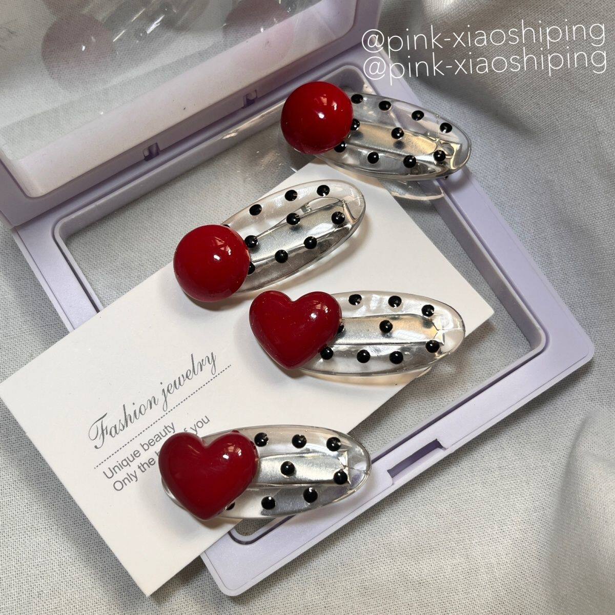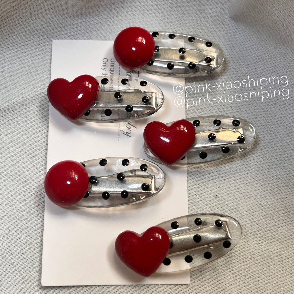 甜美少女高颜值红色仿珍珠发夹对夹 可爱黑色波点椭圆鸭嘴夹ins风