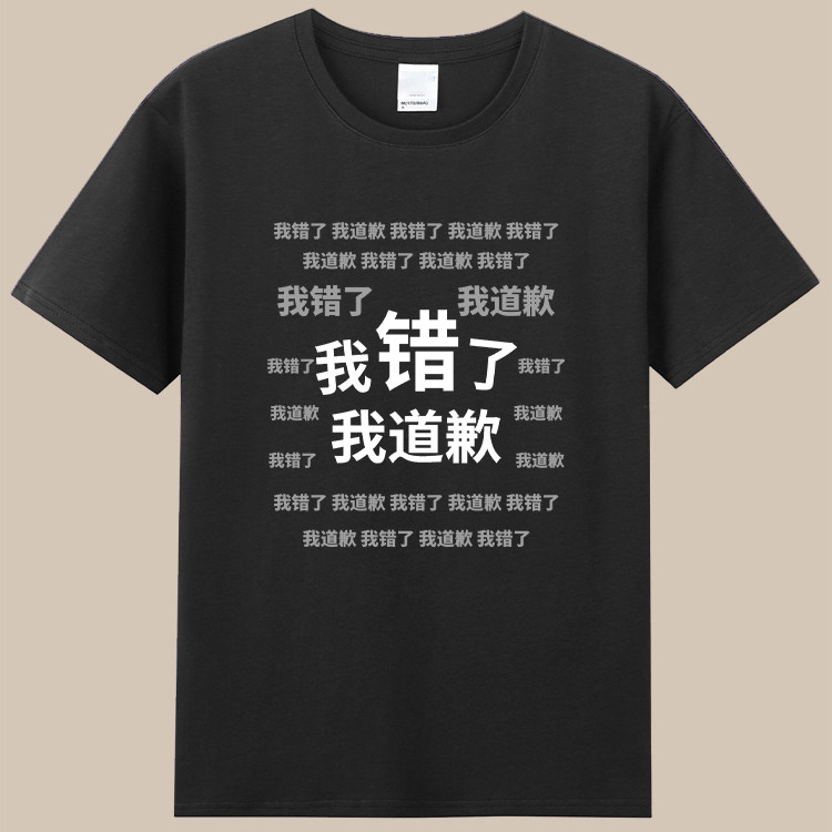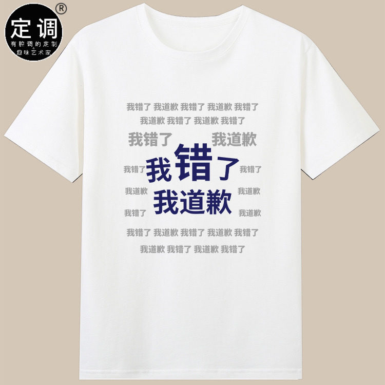 我错了我道歉致敬张雪峰直播衣服圆领短袖纯棉t恤印字定制diy男夏