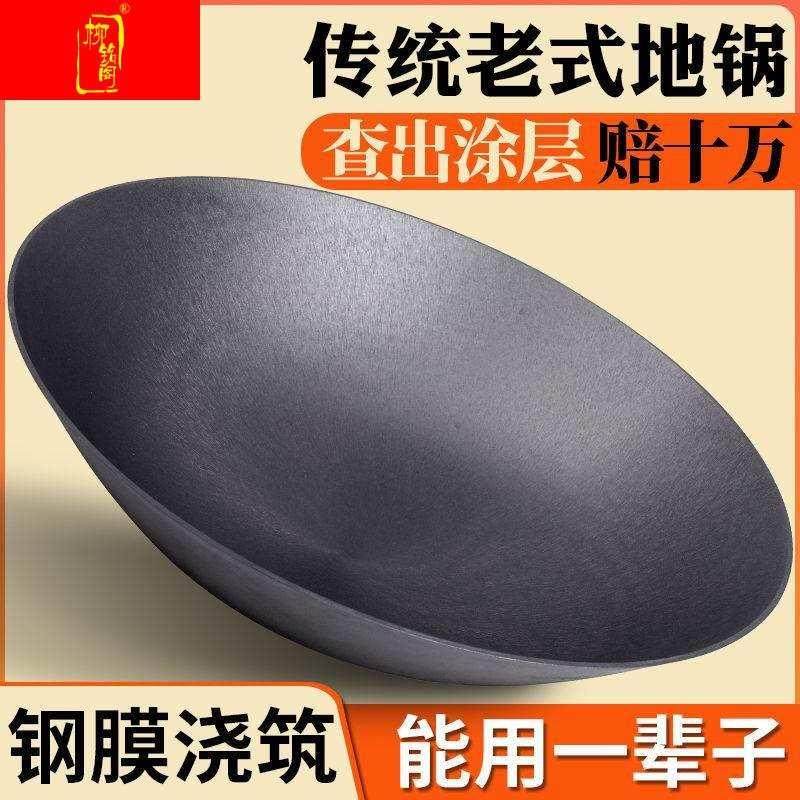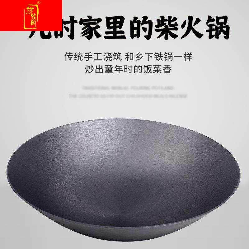 新品农村大铁锅炖竈台家用老式柴火炉无耳特大号商U用生铁锅铸铁