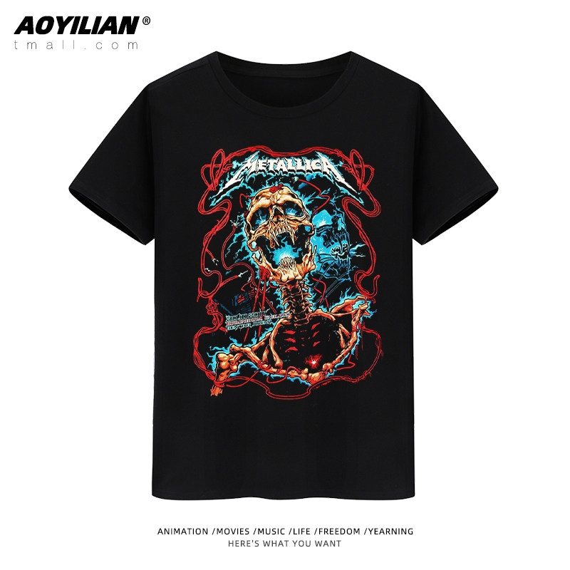 欧美街头摇滚重金属乐队印花短袖T恤男女高街风上衣嘻哈潮流半袖
