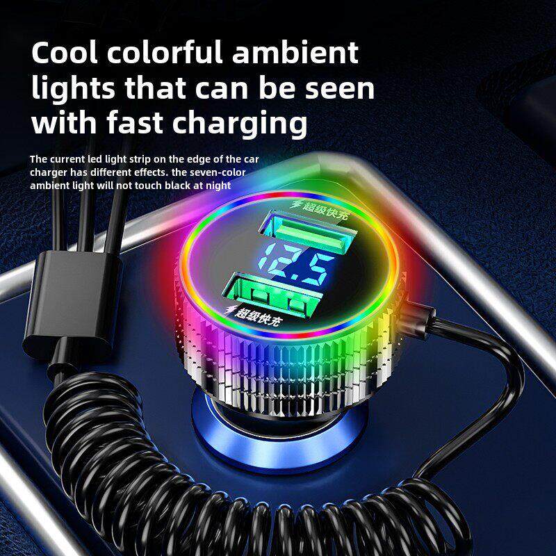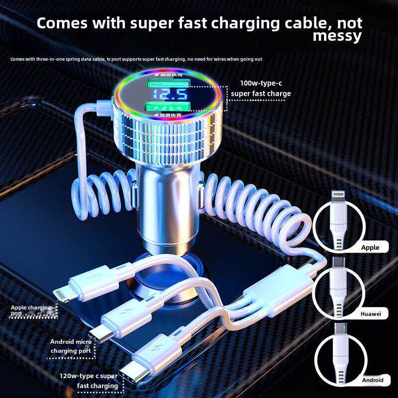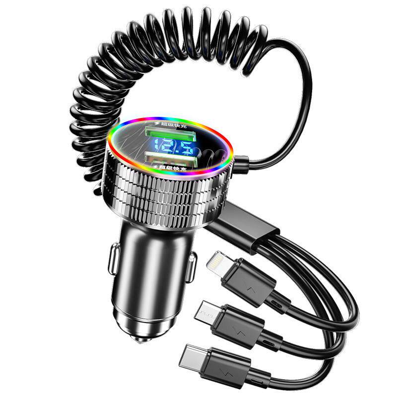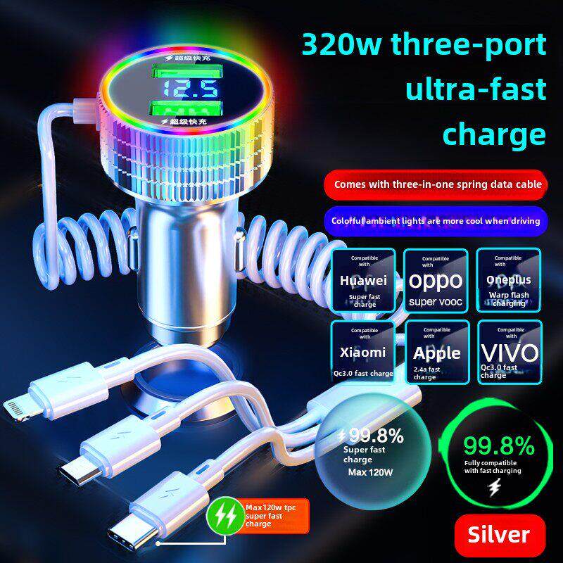 新科车载手机充电器320W超级快充自带三合一线多功能汽车点烟器
