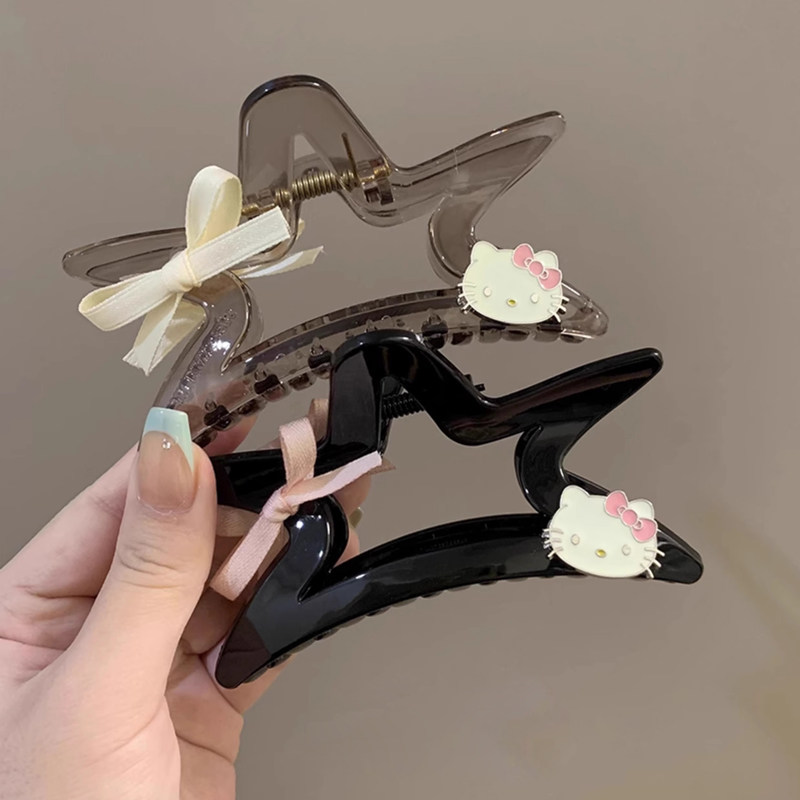 卡通kt猫蝴蝶结抓夹女2025新款少女心后脑勺盘发五角星鲨鱼夹发饰
