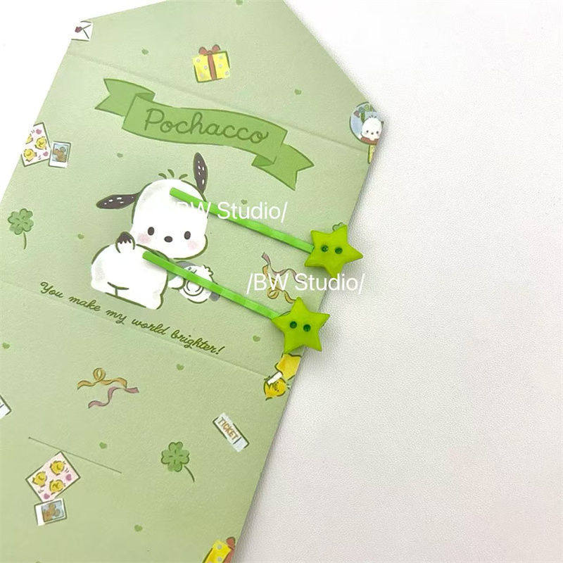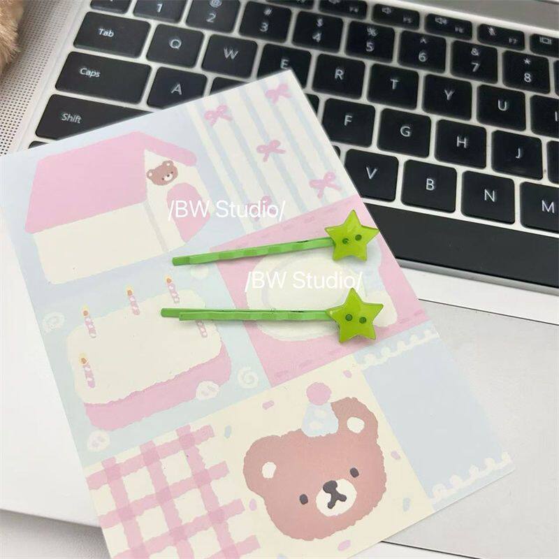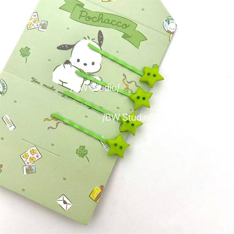 绿色星星刘海少女不规则侧边发夹一字夹碎发夹头饰
