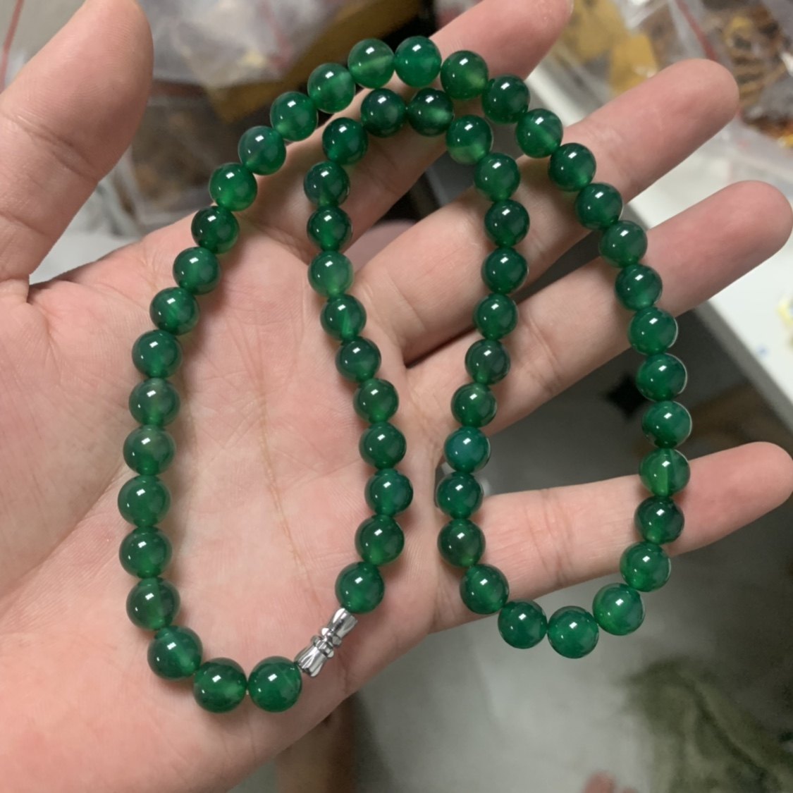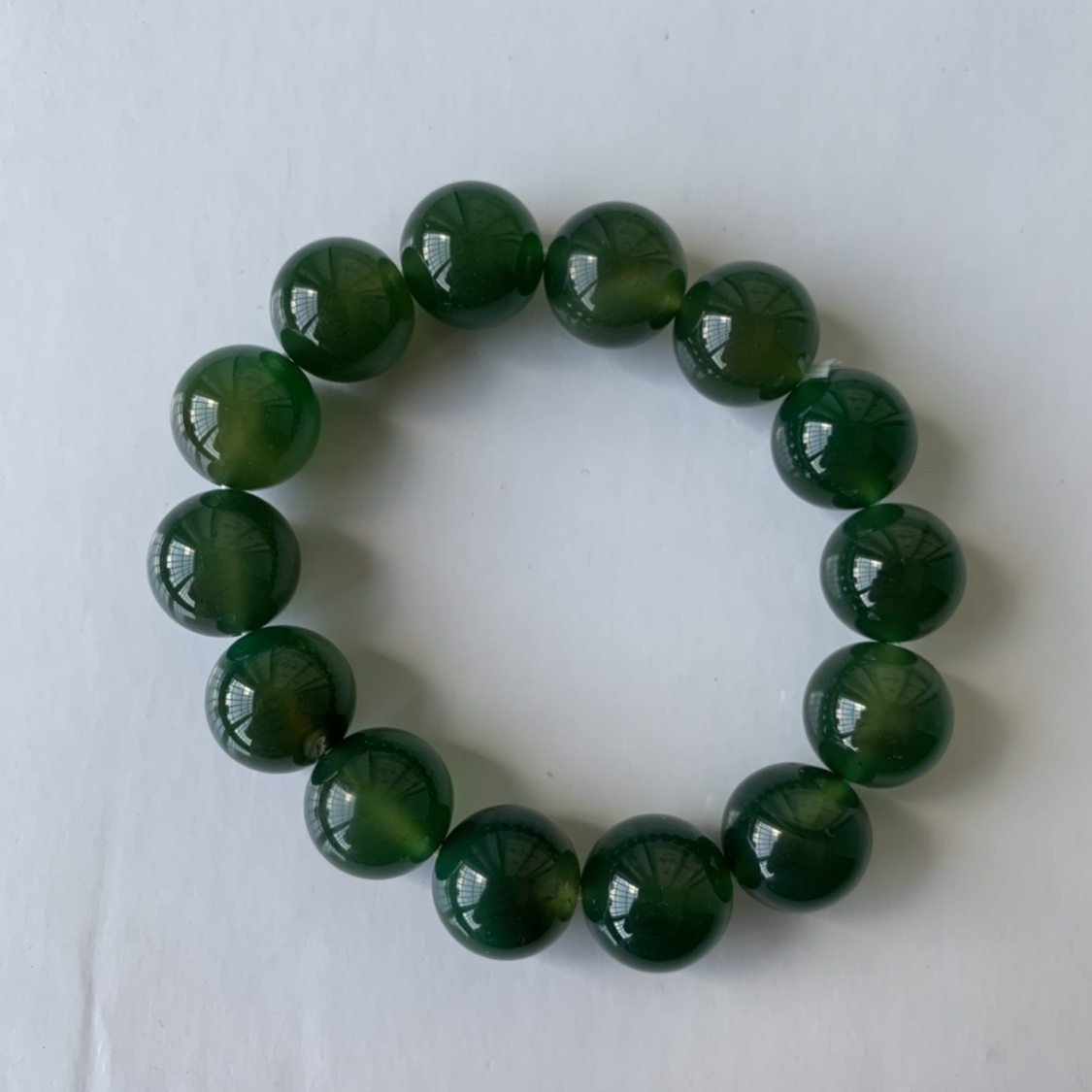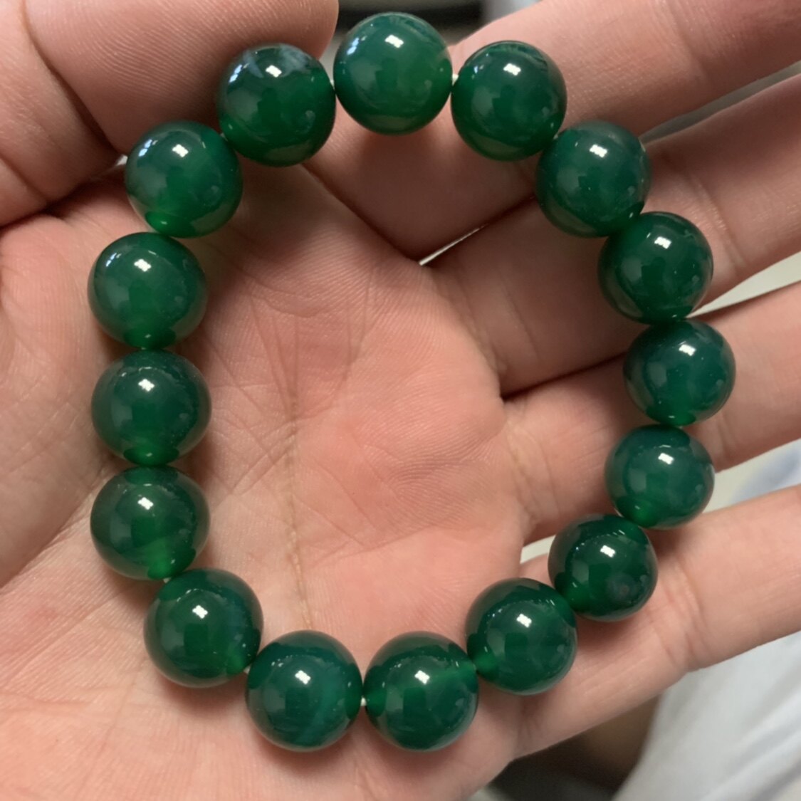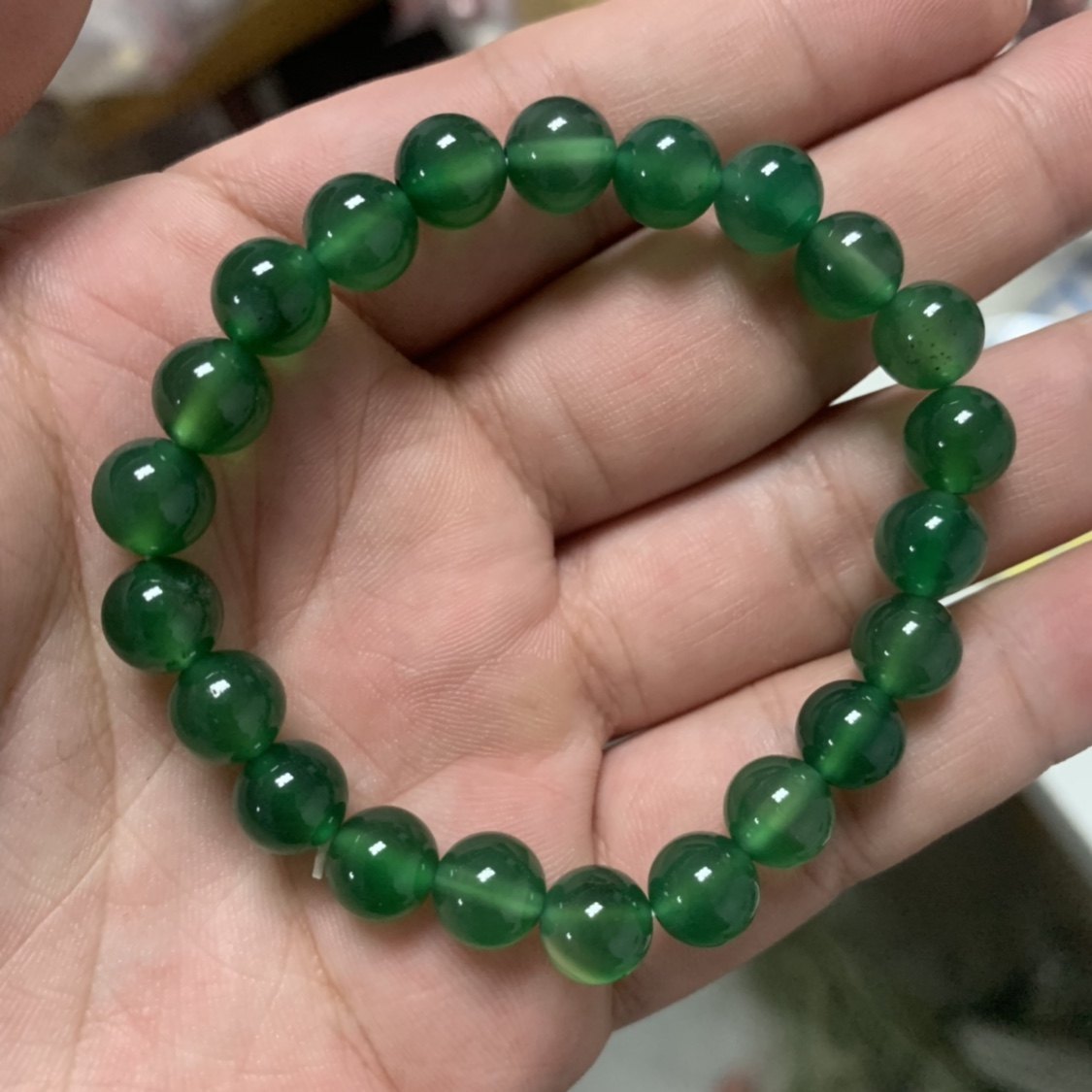 纯天然冰种绿玛瑙手链男女 玛瑙玉髓单圈佛珠手串本命年水晶饰品