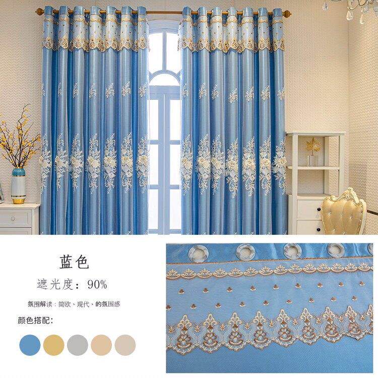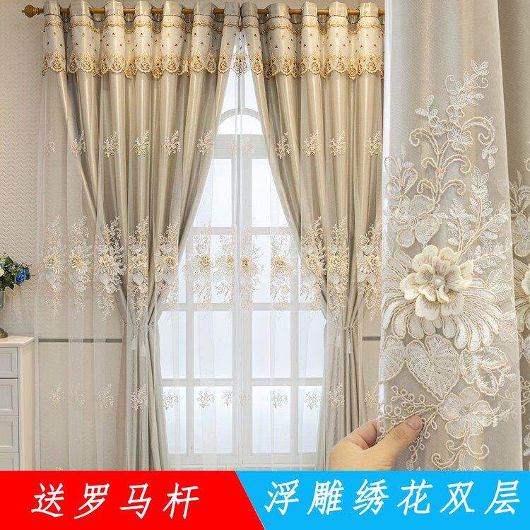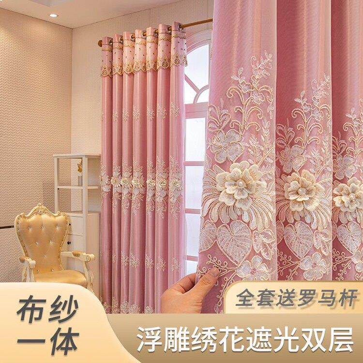 全套送杆子窗户布纱一体遮光立体浮雕双层绣花轻奢全遮光卧室客厅
