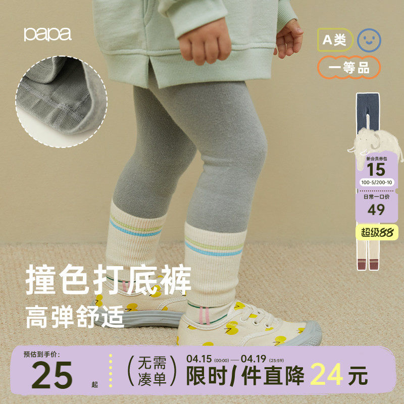 papa春秋款儿童打底裤袜女宝宝高弹舒适拼色撞色外穿百搭洋气时髦