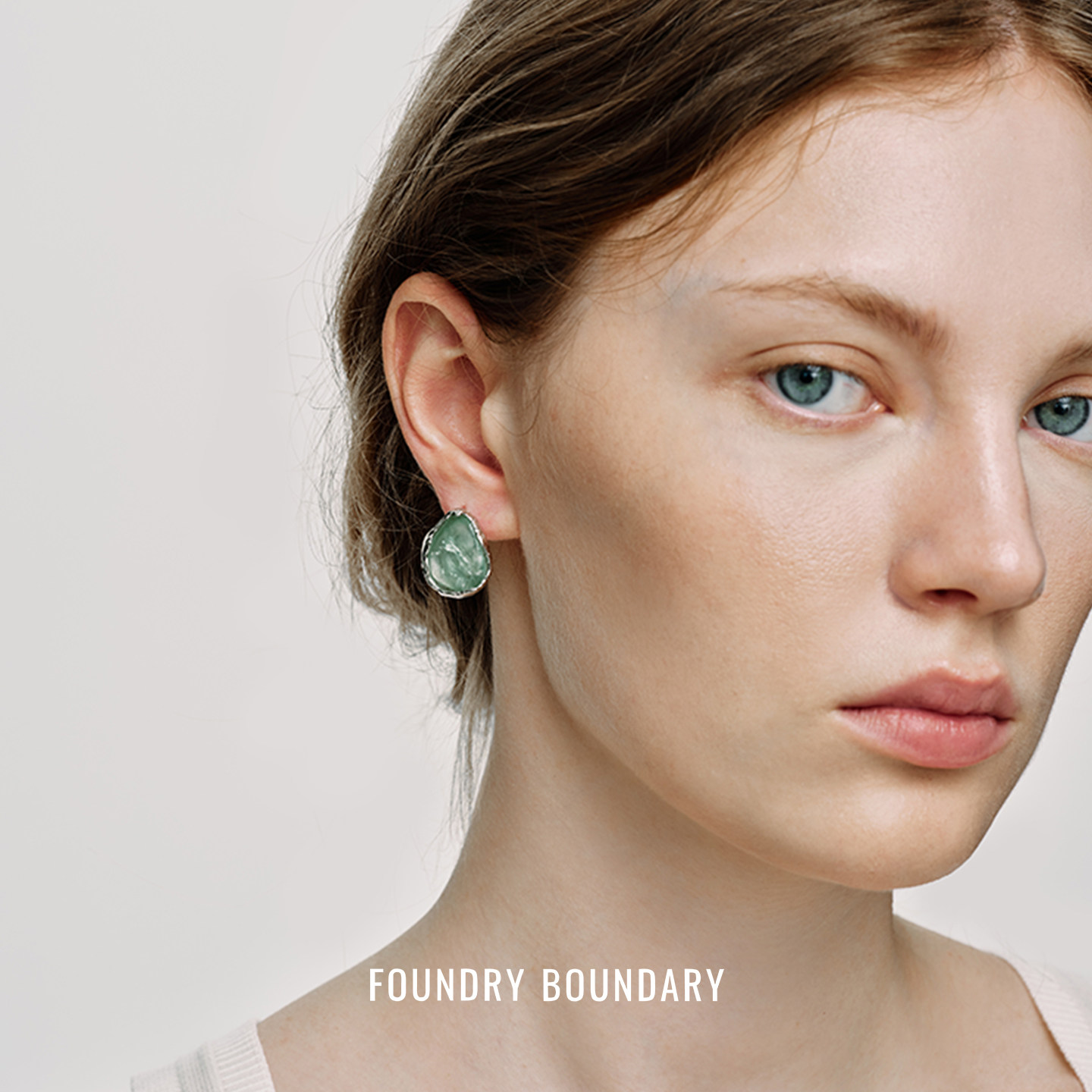 FOUNDRY BOUNDARY 泉滴耳钉 纯银水晶原创设计师气质高级感 默叙