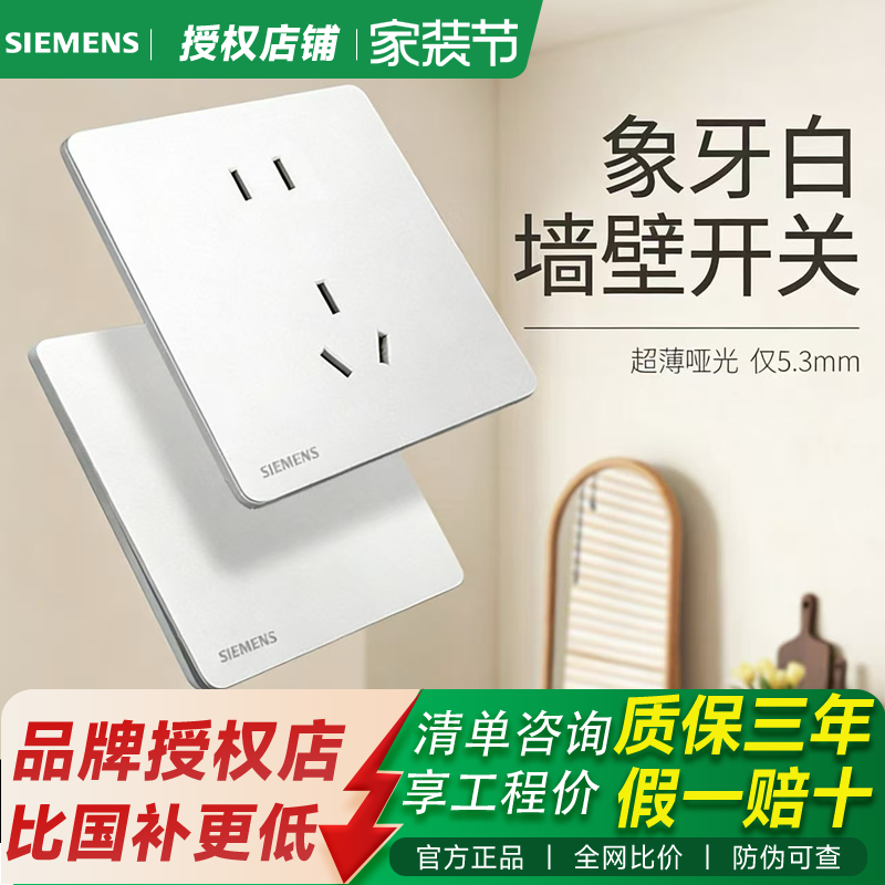 西门子睿宸象牙白哑光墙壁开关插座面板一开五孔usb家用套餐超薄