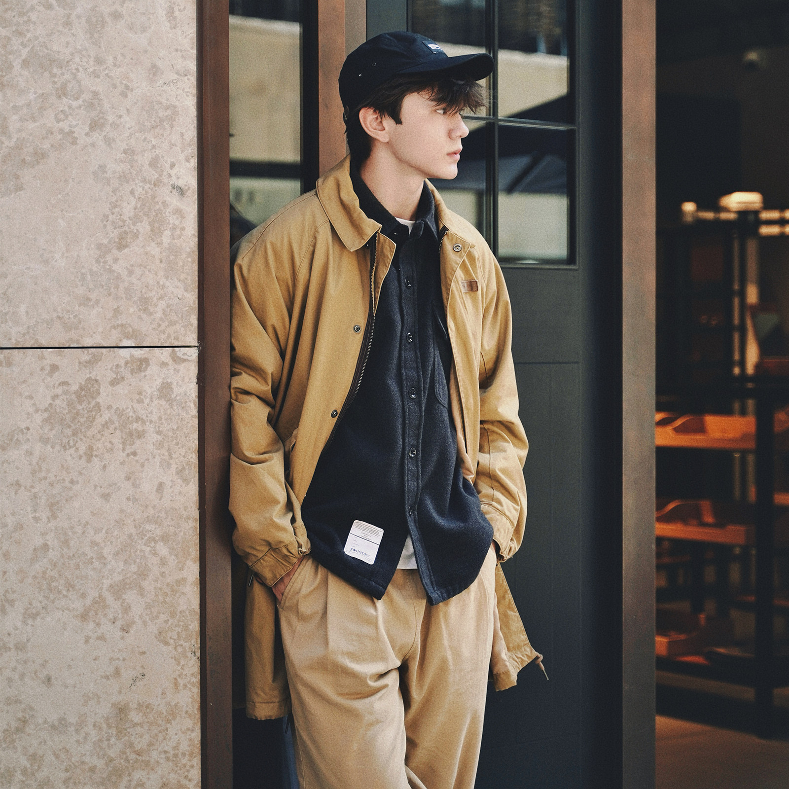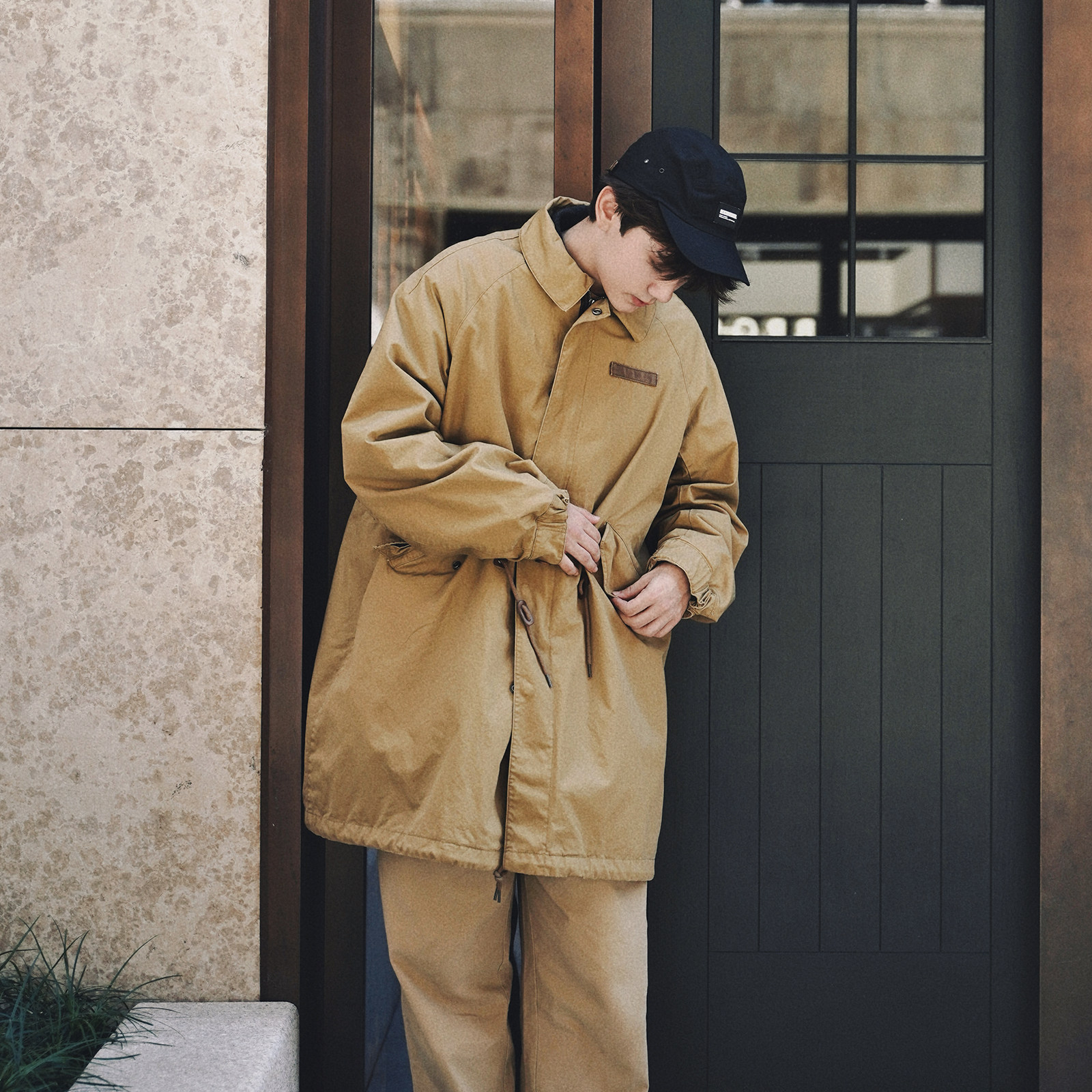 foundry水洗做旧M51风衣男鱼尾设计长款宽松复古风工装风大衣夹克