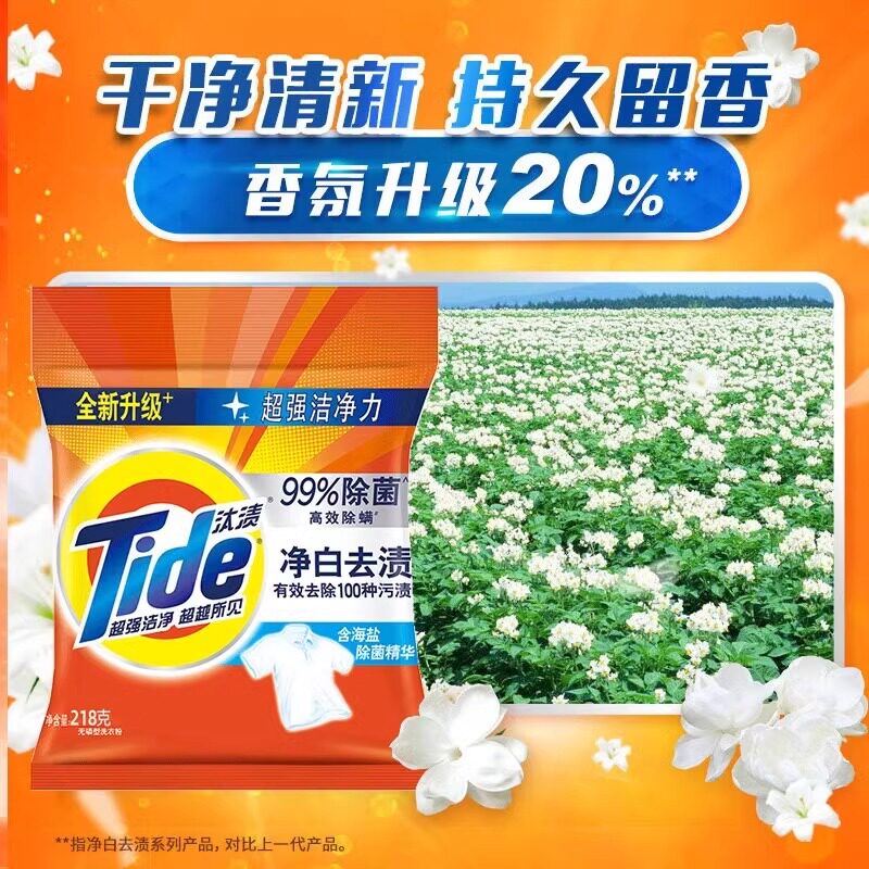 汰渍洗衣粉净白去渍无磷洗衣粉批发小袋装去污不伤手低泡易漂218g