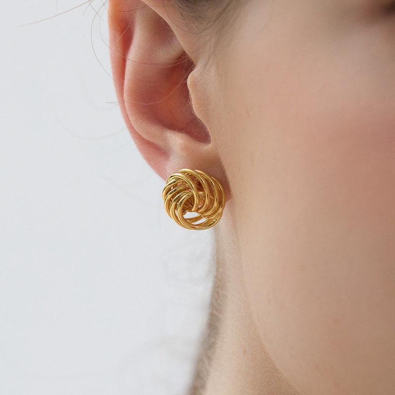 盐岛徐娇同款琼花单花金色耳钉耳环轻奢小众原创耳饰复古轻奢气质