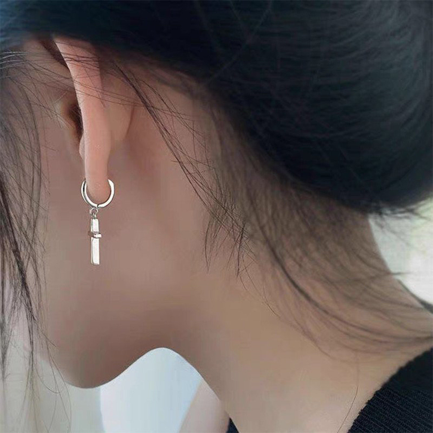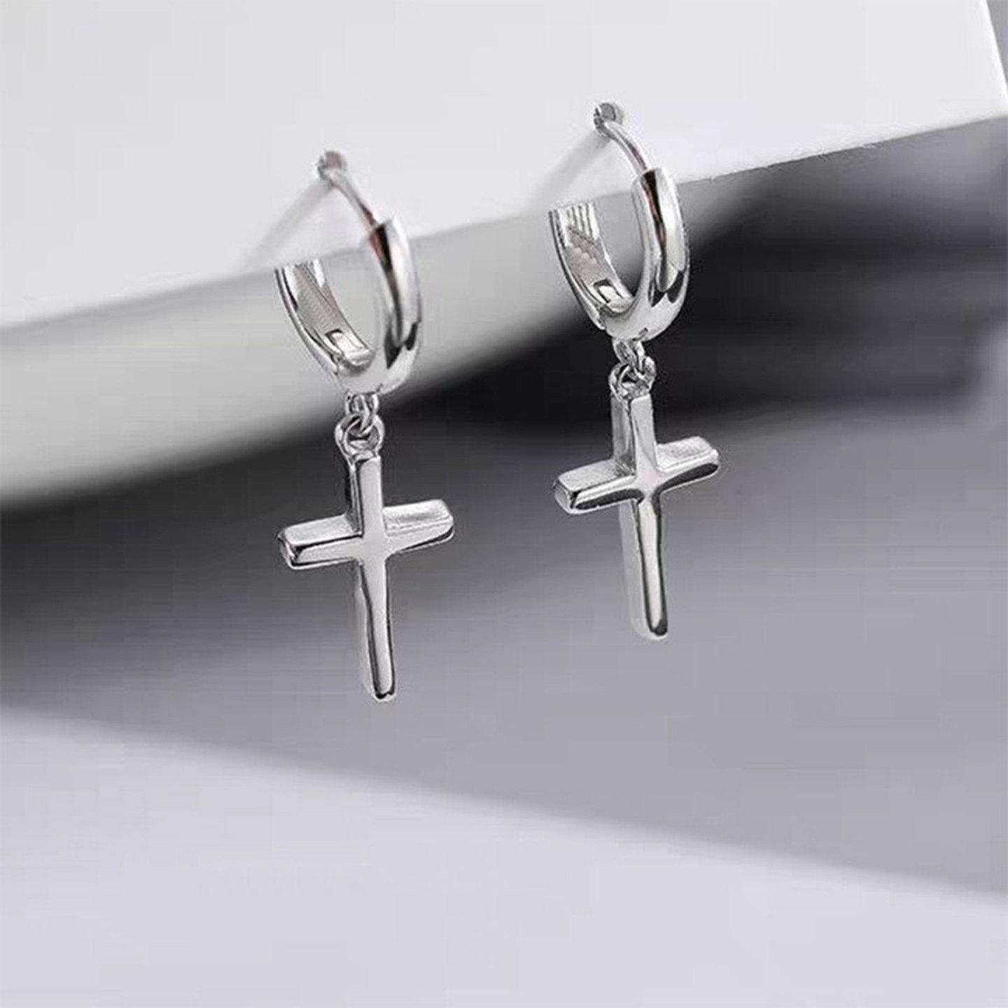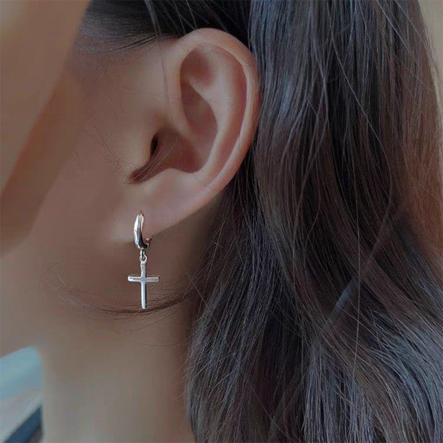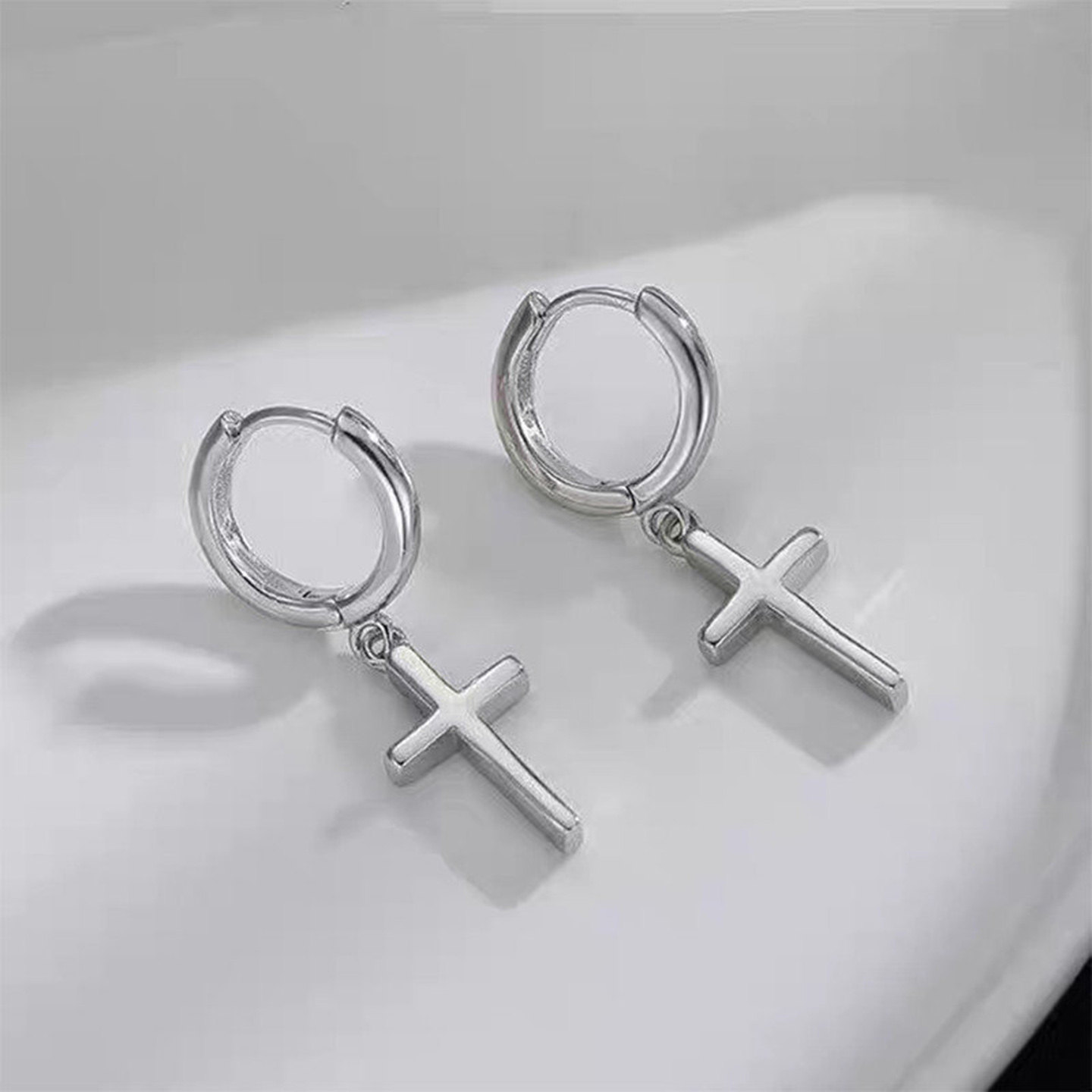 s925银针十字架吊坠耳扣女小众设计美式艺术生耳环男士酷帅耳饰潮