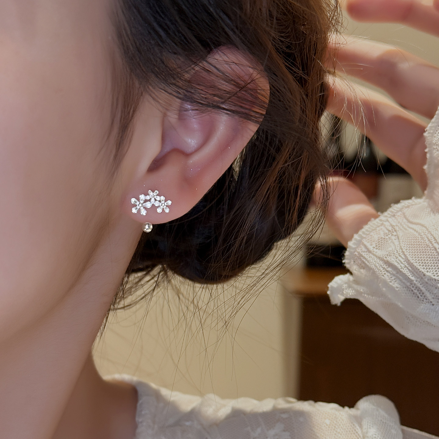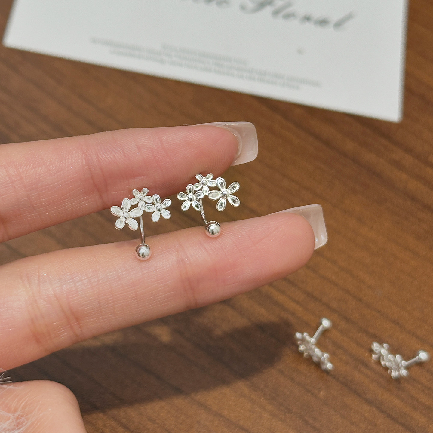 Z小姐999银繁花螺旋弯钩耳钉2026新款甜美精致气质高级感耳环耳饰