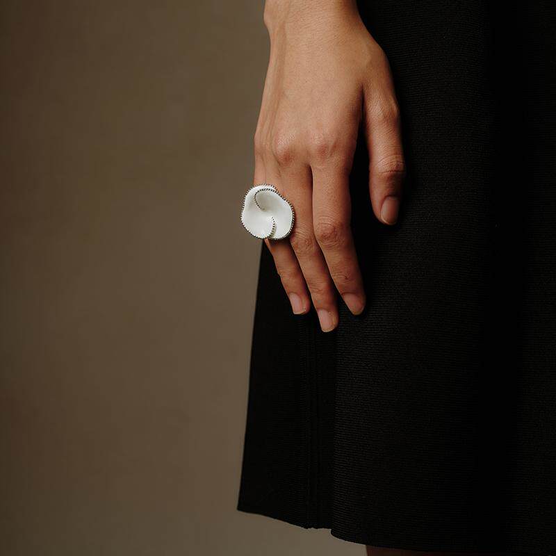 ZHAO ACAP原创设计虎刺梅白珐琅戒指开口可调节