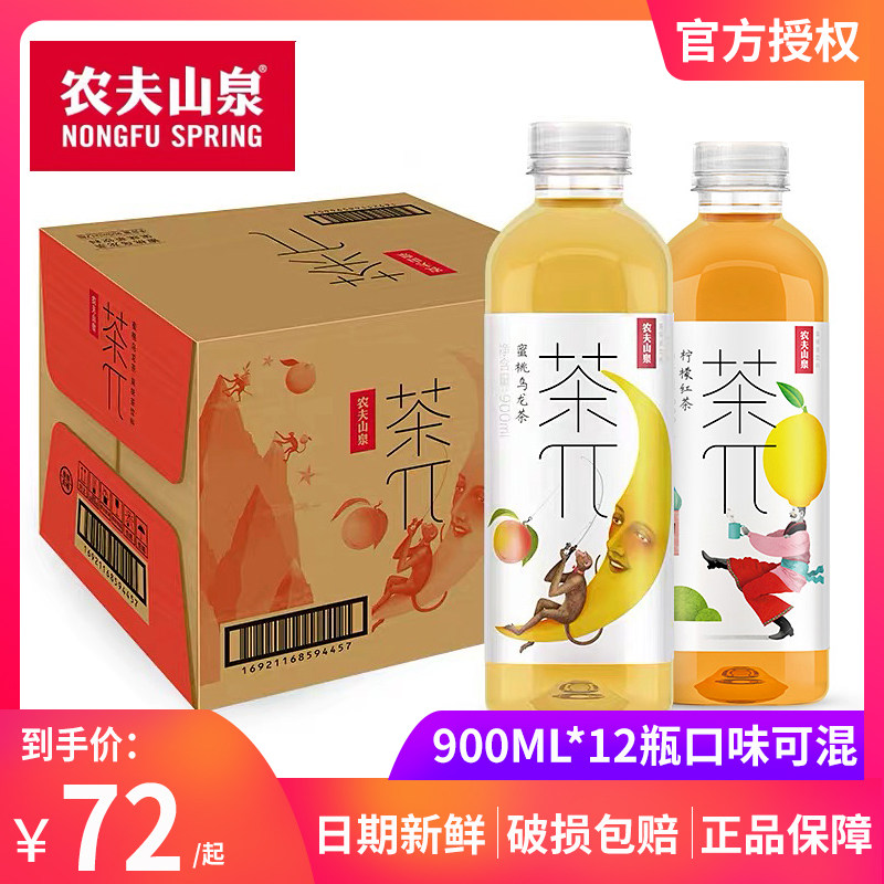 农夫山泉茶π900ml*12瓶大瓶整箱茶派柠檬红茶蜜桃乌龙茶果味饮料