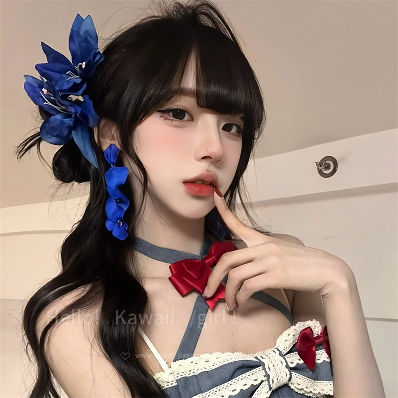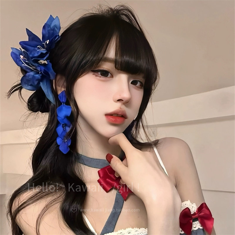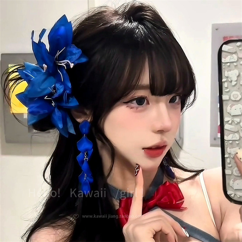 蓝色百合花发夹清冷氛围感花瓣耳环海边度假风发饰头花高级感饰品