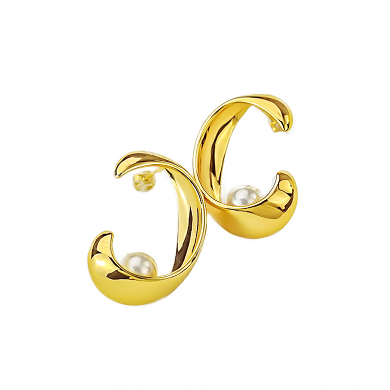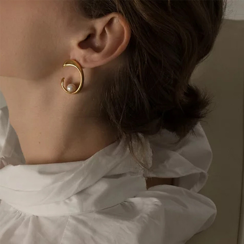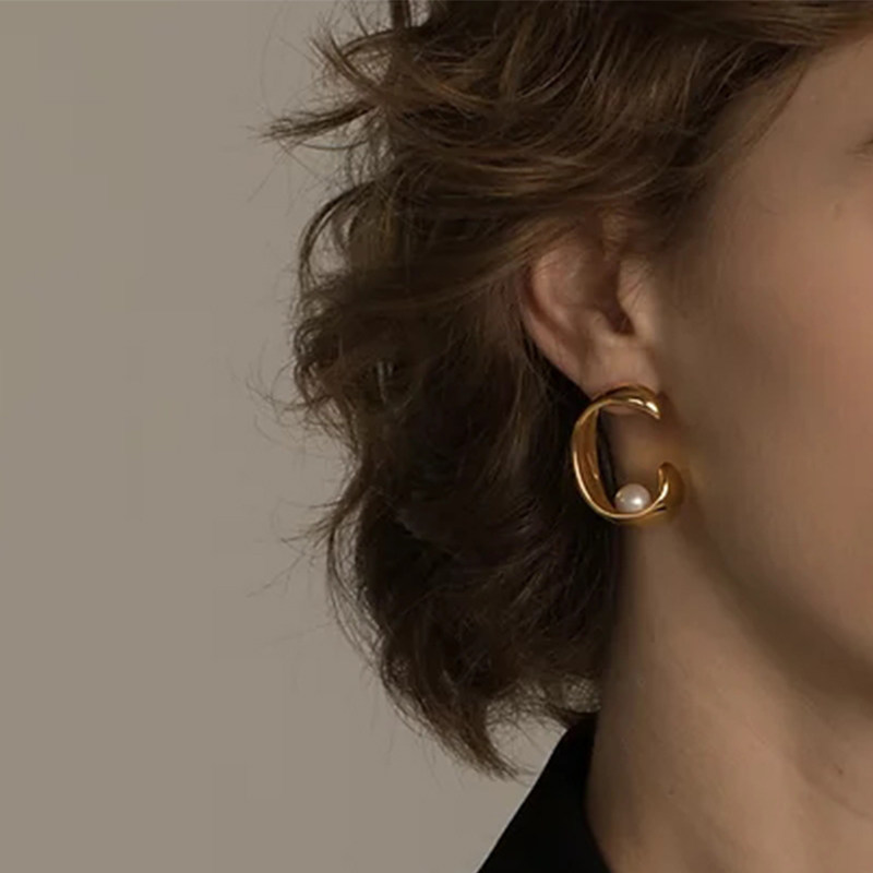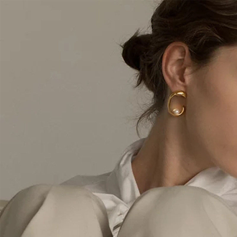 美国Unfolds人体曲线珍珠耳环小众设计感女 高级复古浪漫镀金耳饰