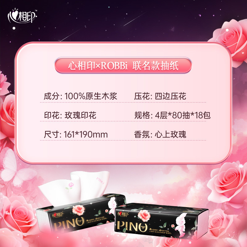 18包心相印品诺ROBBi联名款抽纸整箱纸巾PINO心心相印心向印官方