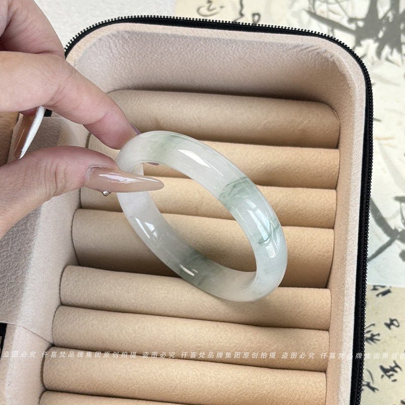 仟喜梵“晴空万里”高端翡翠平替天山翠玉手镯子女款冰飘花真玉镯