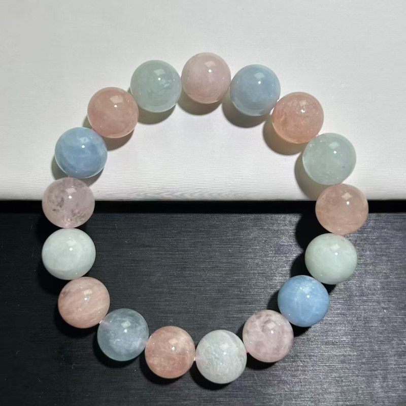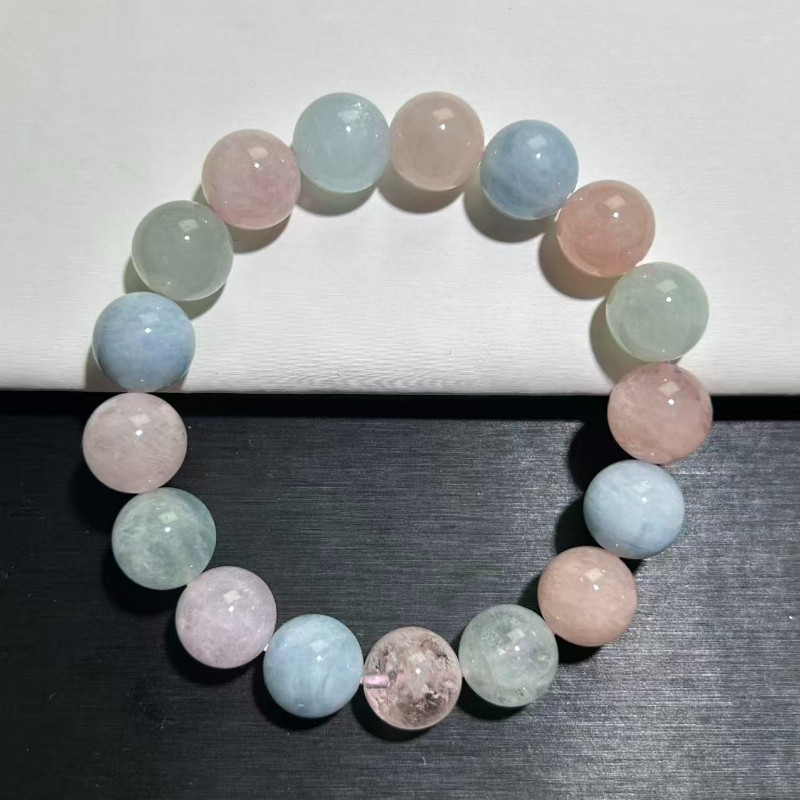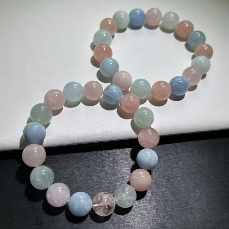 摩根石手串彩色绿柱石糖果色马卡龙手链女款一物一拍
