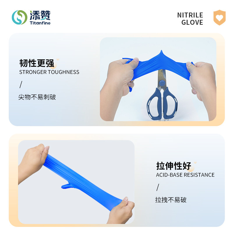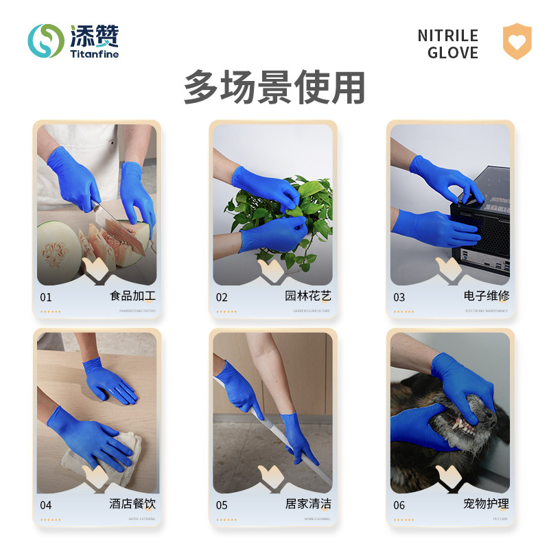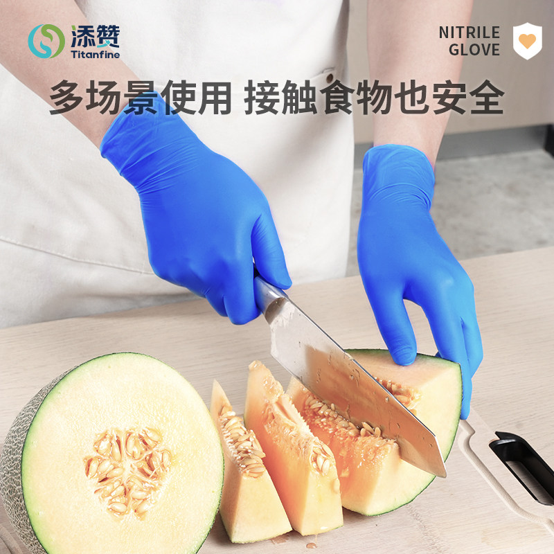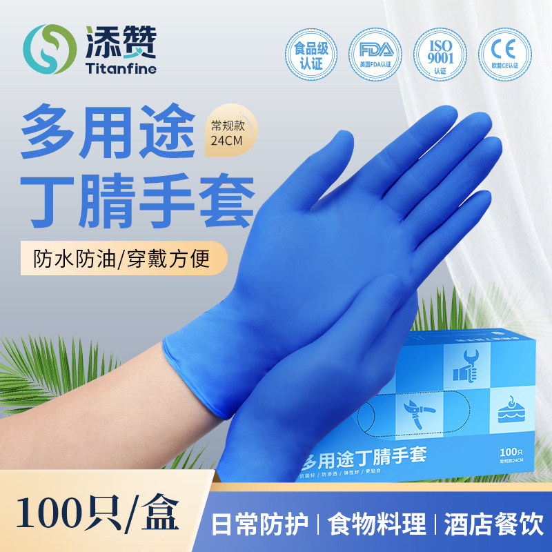 添赞多用途丁腈手套一次性食品级防水防油100只装蓝色