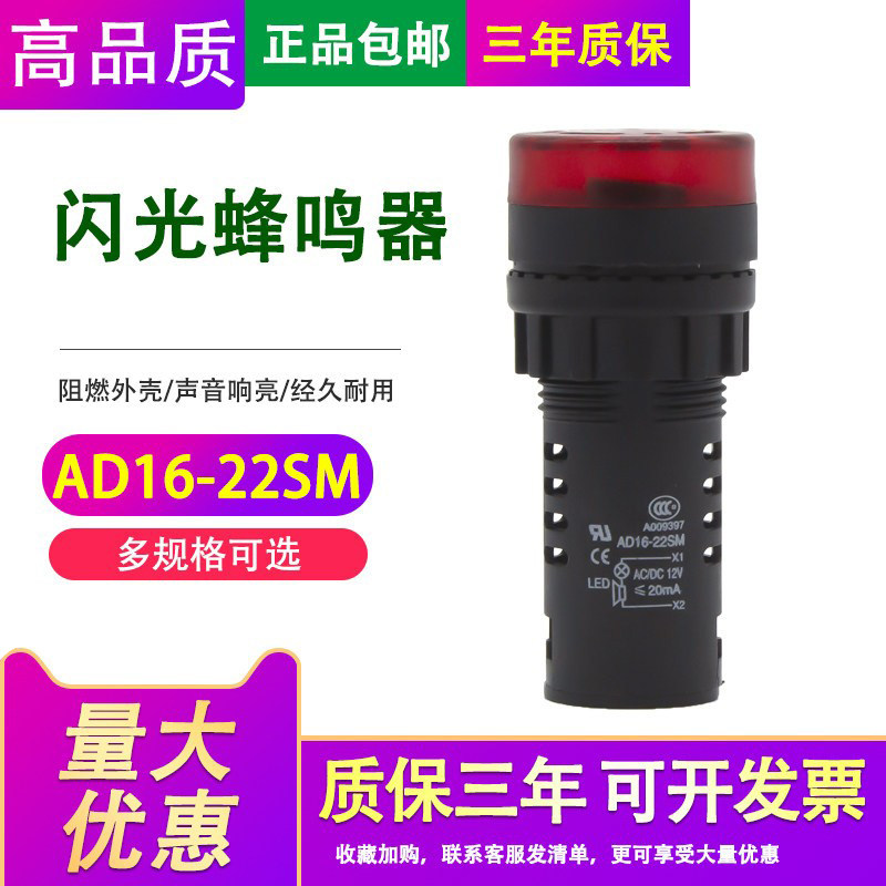 声光蜂鸣器AD16-22SM红色闪光故障报警器讯响12V24V220V开孔22mm