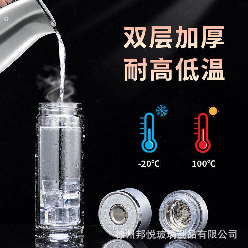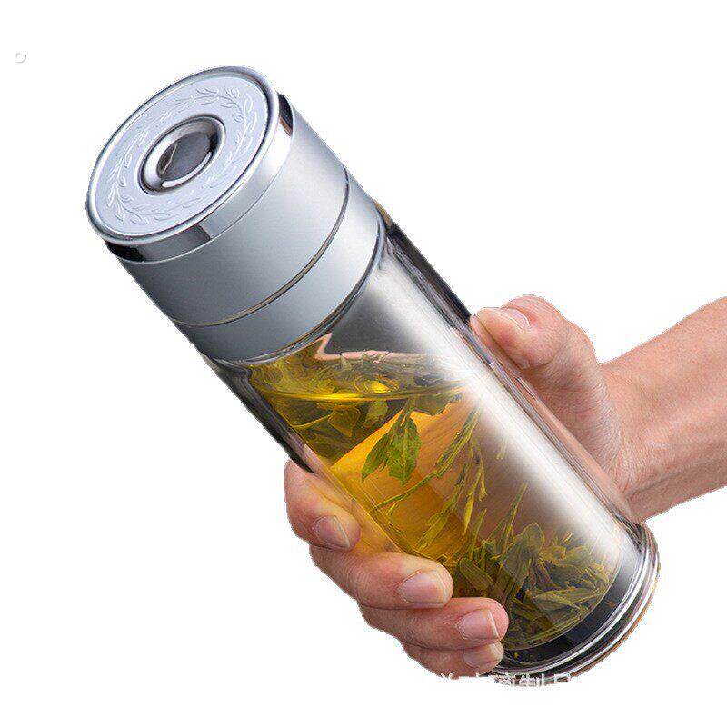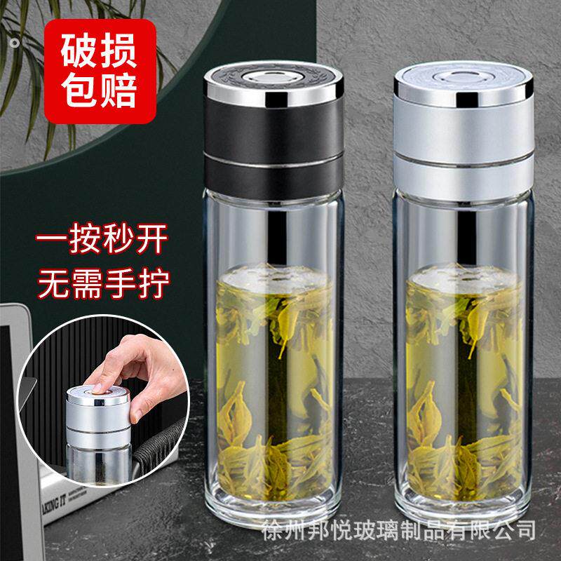 一键开盖车载双层玻璃杯男士办公室保温水杯茶杯速开启茶水分离杯