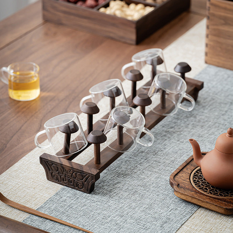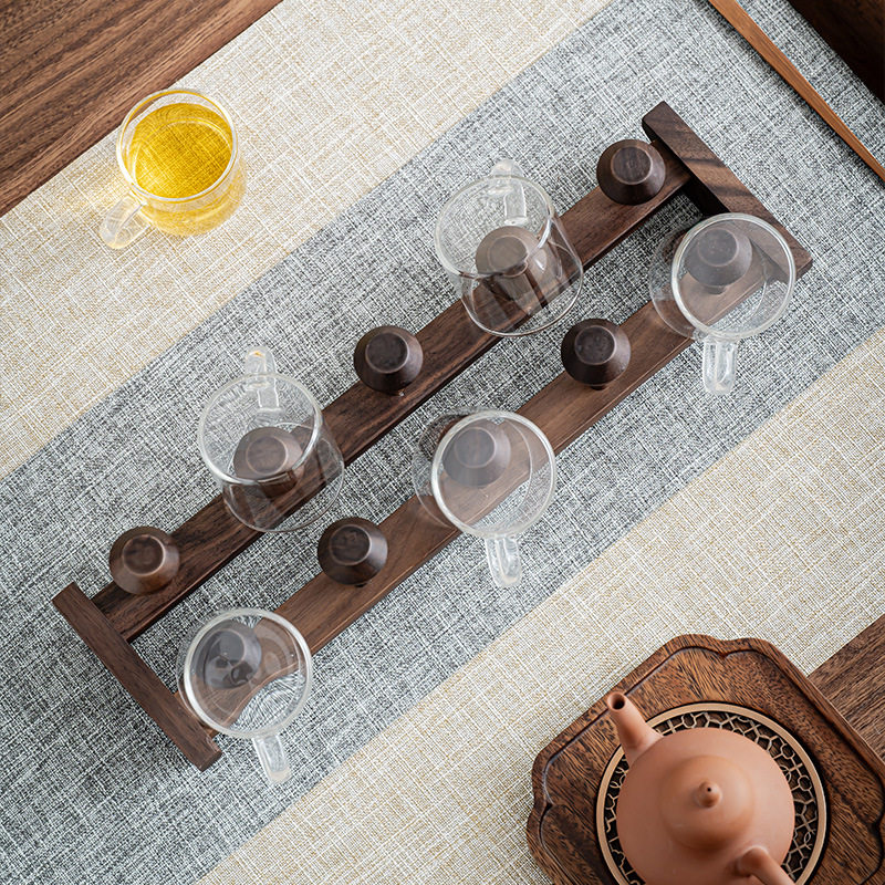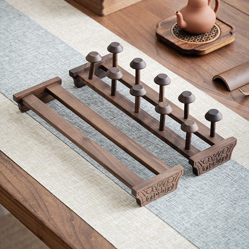 南美黑胡桃实木茶具收纳架博古架茶杯功夫紫砂茶壶置物收纳展示