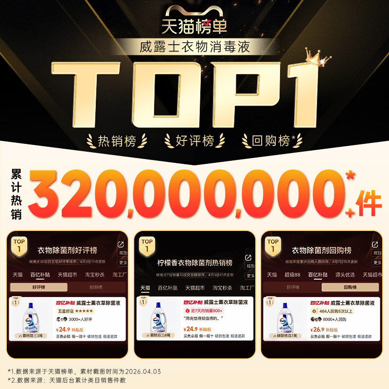 【官旗正品】威露士衣物消毒液衣物专用除菌液内衣内裤袜子洗衣