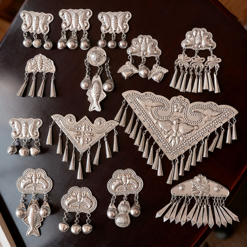 苗族银饰云肩配件贵州黔东南铝饰品手工DIY少数民族服装配饰银片