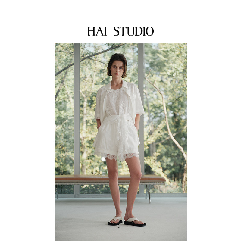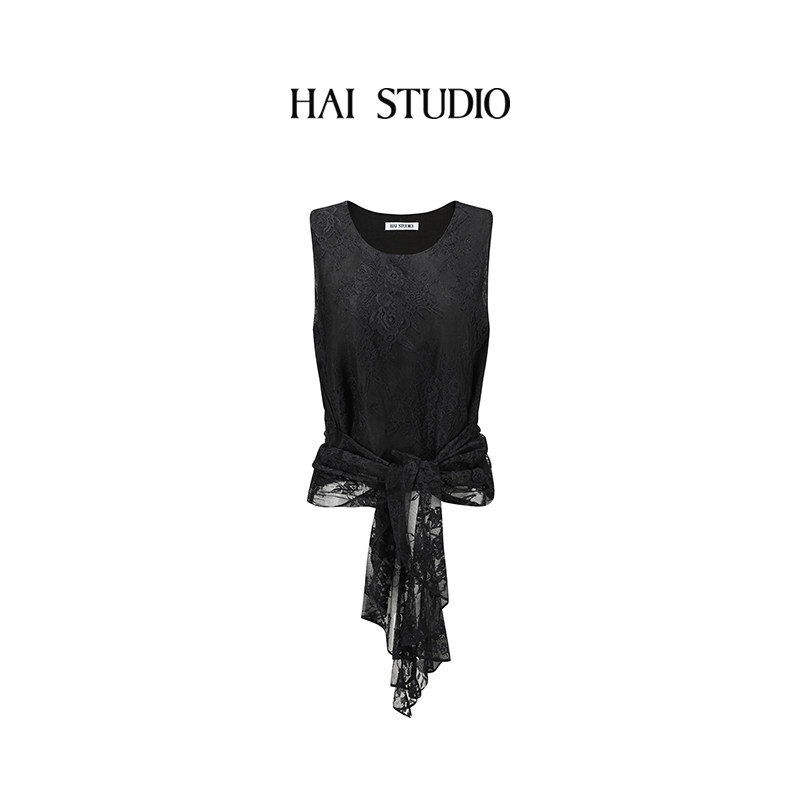 HAI STUDIO2026早春度假新品 女士蕾丝无袖上衣 小众设计飘带背心