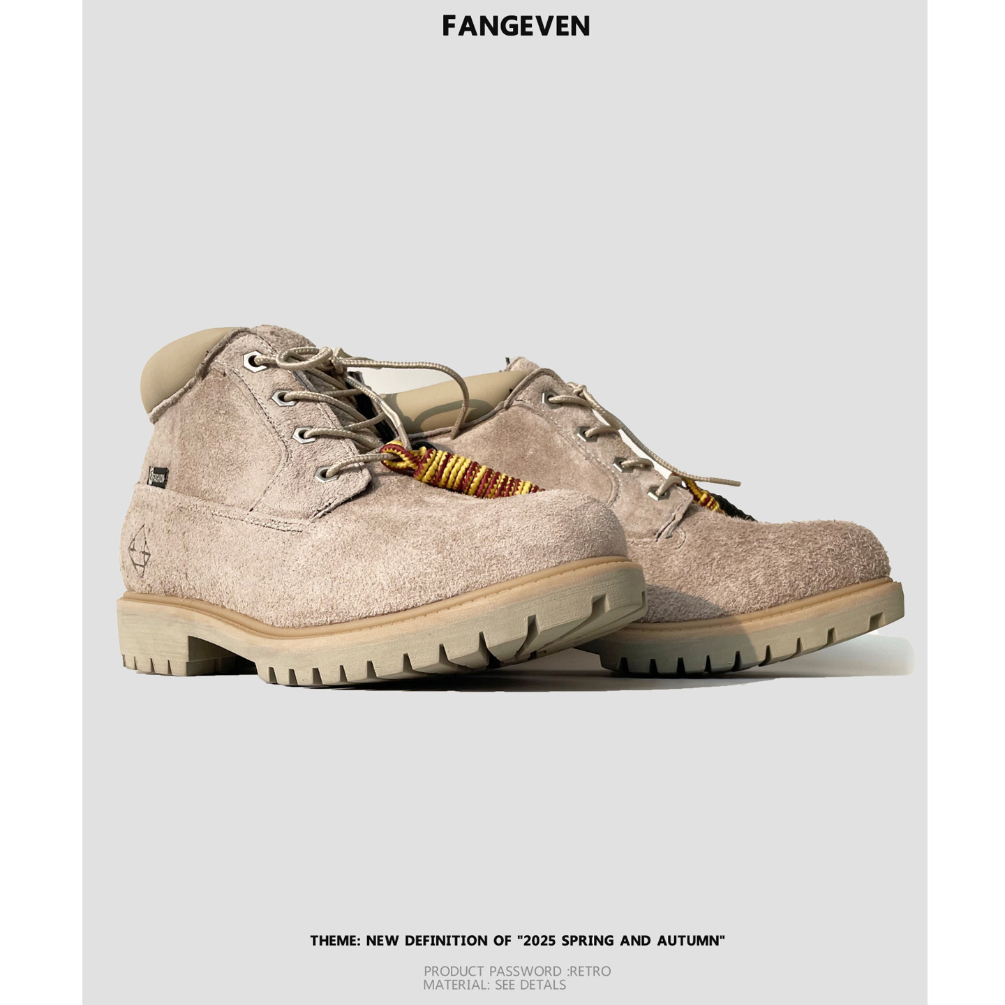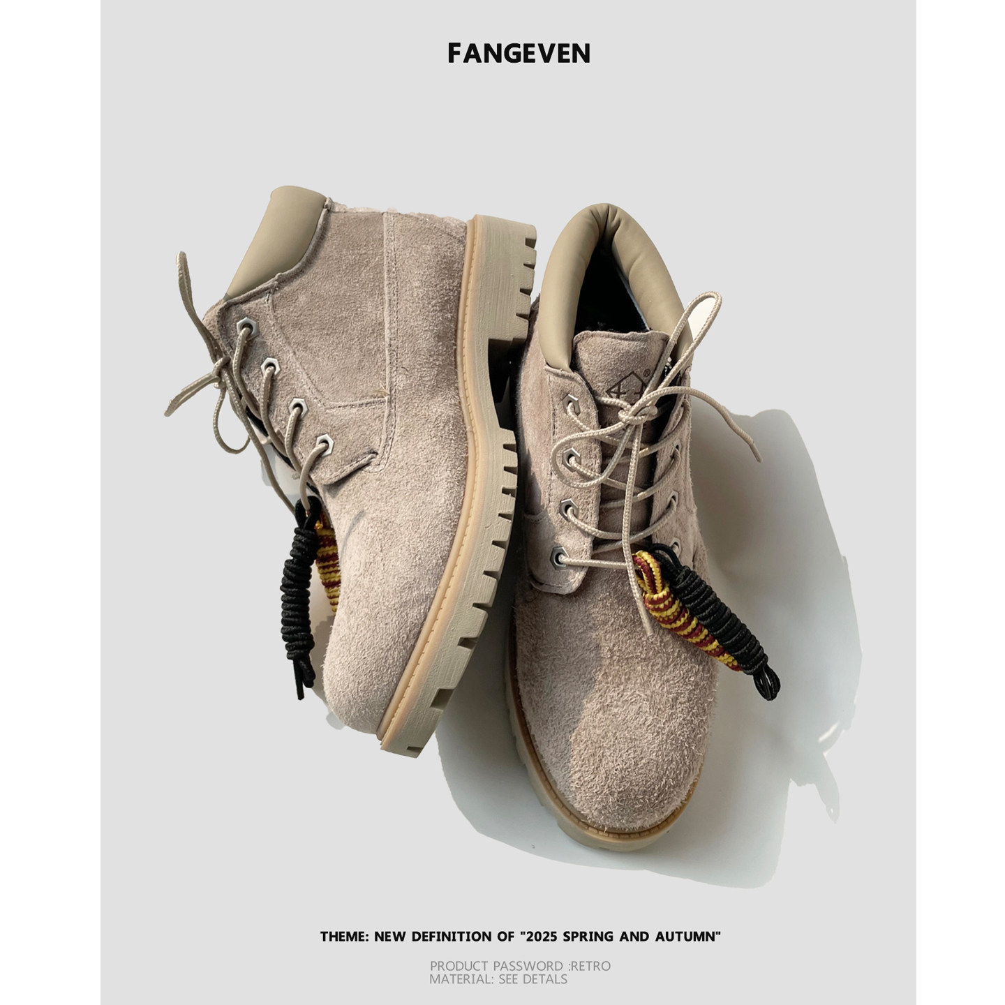 Fang even复古马丁靴男绑带牛反绒增高登山靴子户外橡胶厚底短靴