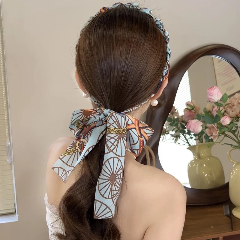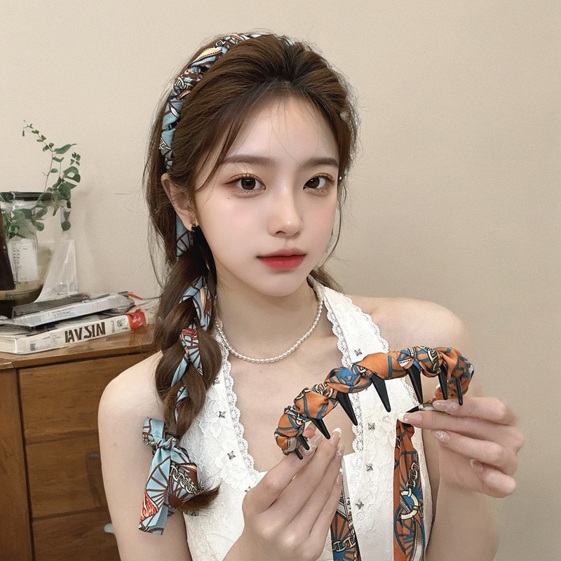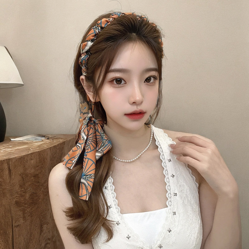 复古链条缎面飘带发箍女高颅顶显脸小发卡气质编发高级感发带头箍